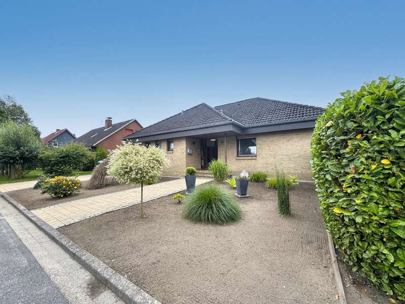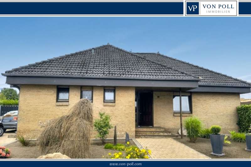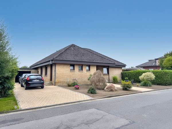 This well-kept bungalow presents itself as an attractive residential offer for prospective buyers who value solid construction, well thought-out room layouts and a variety of possible uses. Built in 1979, the property has a living space of approx. 115 m² and is situated on a plot of around 700 m². Here you benefit from a harmonious combination of functionality and individual design potential in a quiet residential area. The inviting entrance area leads to the spacious living and dining area of the house, which serves as the central focal point. Here, a fireplace provides pleasant warmth and a cozy atmosphere - especially in the cooler seasons. The adjoining fitted kitchen is fully equipped and offers plenty of space for cooking together and small meals in between. There are a total of four well-designed rooms, three of which are bedrooms, which can be used in a variety of ways - as a study, guest room or children's room. The windows in all rooms provide a friendly incidence of light and create a pleasant living atmosphere. A modern bathroom and a separate guest WC complete the space on offer. The existing utility room is particularly advantageous, with practical equipment that makes everyday life easier and offers additional storage space. There is also a reserve space in the attic for individual living space requirements, giving you further design options. The spacious plot is ideal for a variety of outdoor activities. A pavilion in the garden offers a sheltered spot for socializing, relaxing reading breaks or barbecues with friends. With plenty of lawn space, there is room for garden projects or play areas for the whole family. The garage adjacent to the house not only provides a weather-protected parking space for your vehicle, but also additional storage space for bicycles or garden tools. There is plenty of space for other vehicles on the driveway. For further information, documents or a viewing appointment, please do not hesitate to contact us. Discover the possibilities offered by this well-kept home on site and be impressed by the wide range of potential uses. We look forward to your inquiry!