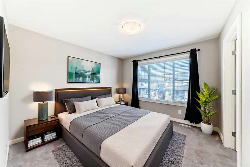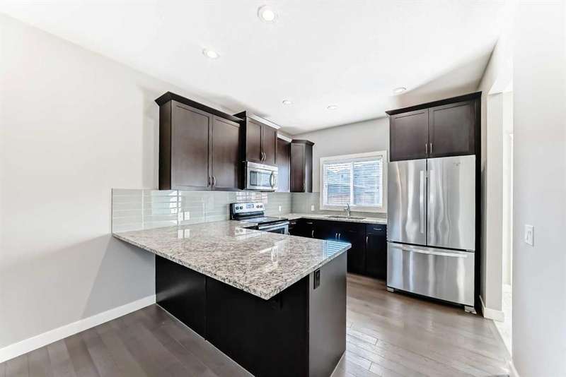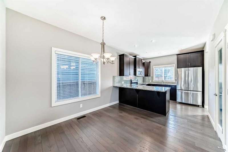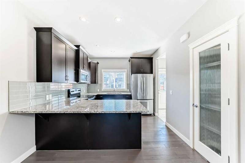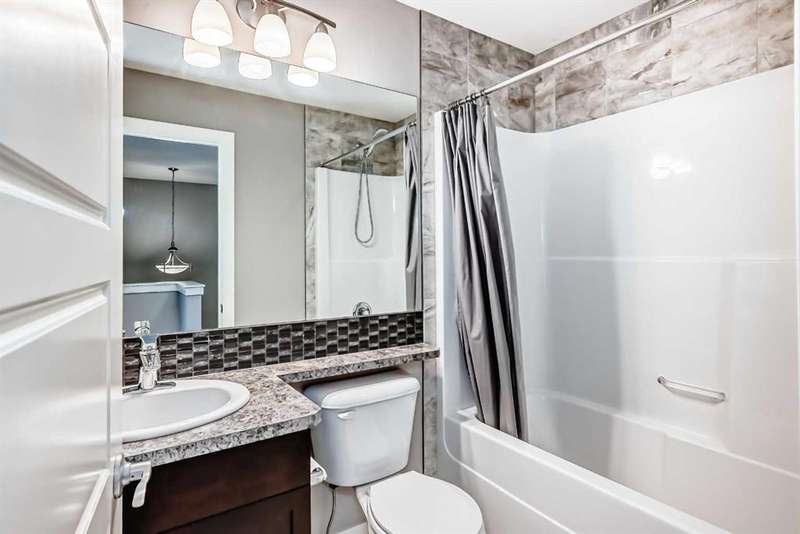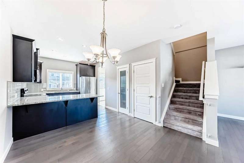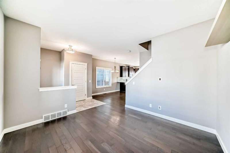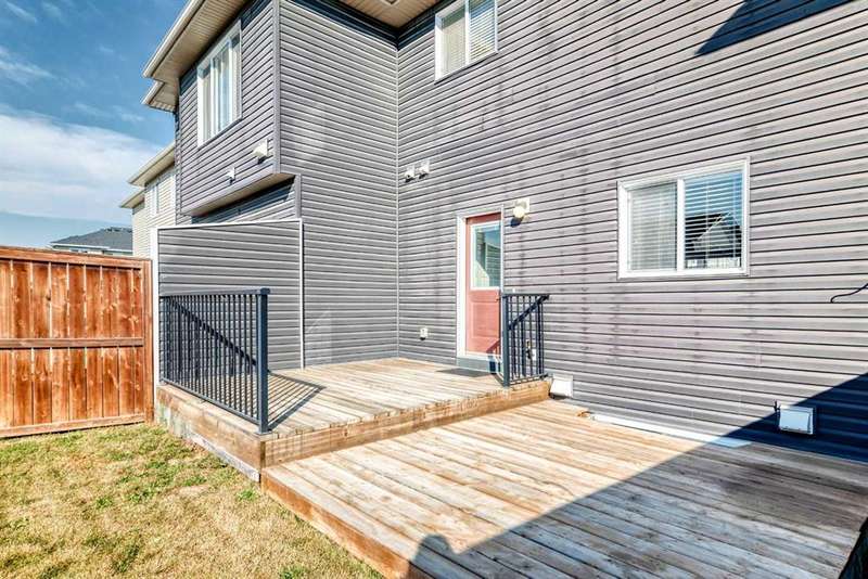 Welcome to this beautifully designed 1,213 sqft semi-detached home, where style meets functionality. From the moment you arrive, the inviting covered front porch sets the tone for the warm and welcoming interior. Step inside to a bright, open-concept main floor that effortlessly connects the spacious front living room, central dining area, and a well-appointed kitchen at the rear. Featuring granite countertops, a pantry for added storage, stainless steel appliances, hardwood floors and a layout that’s perfect for entertaining, this kitchen is both stylish and practical. A convenient 2-piece powder room, main floor laundry and back mudroom completes the main level. Upstairs, you’ll find three comfortable bedrooms, including a serene primary suite with a generous walk-in closet and a private ensuite featuring a walk-in shower. Another 4 piece bathroom perfectly placed between the primary and bedroom two and three ads to privacy for the whole family. The fully developed basement offers additional living space with a fourth bedroom and a full 4-piece bathroom — ideal for guests, teens, or a home office. Enjoy low-maintenance outdoor living with a South facing backyard tiered deck that’s perfect for gatherings and relaxing in the evenings. Located in the desirable community of The Willows, you’re just minutes from schools, playgrounds, and shopping, as well as Cochrane’s scenic trail network and outdoor spaces always within easy reach. This home offers the style you want and the practicality your family needs — all in a location you’ll love.
