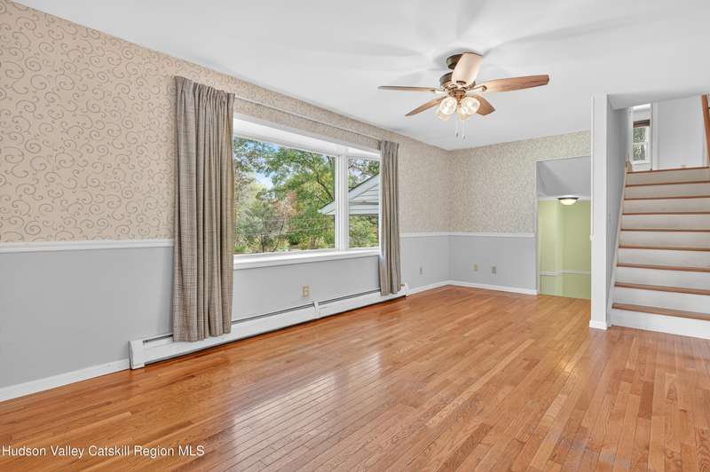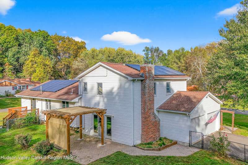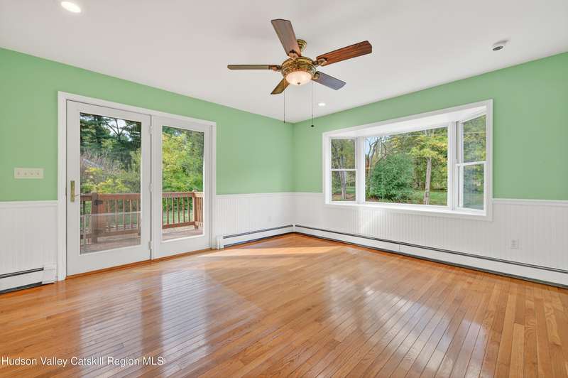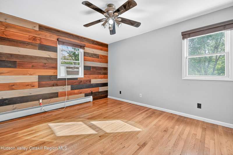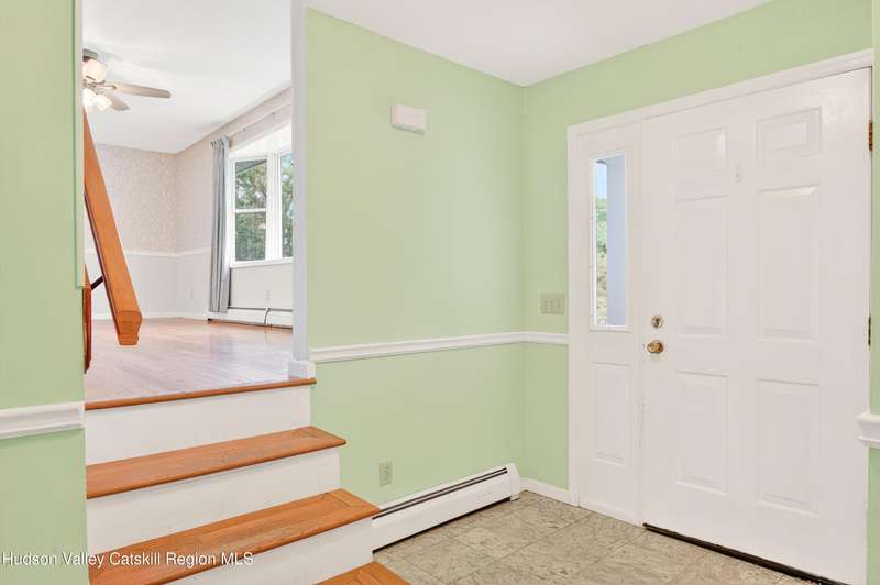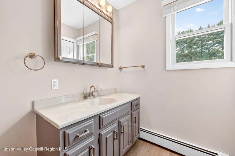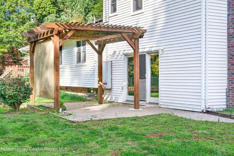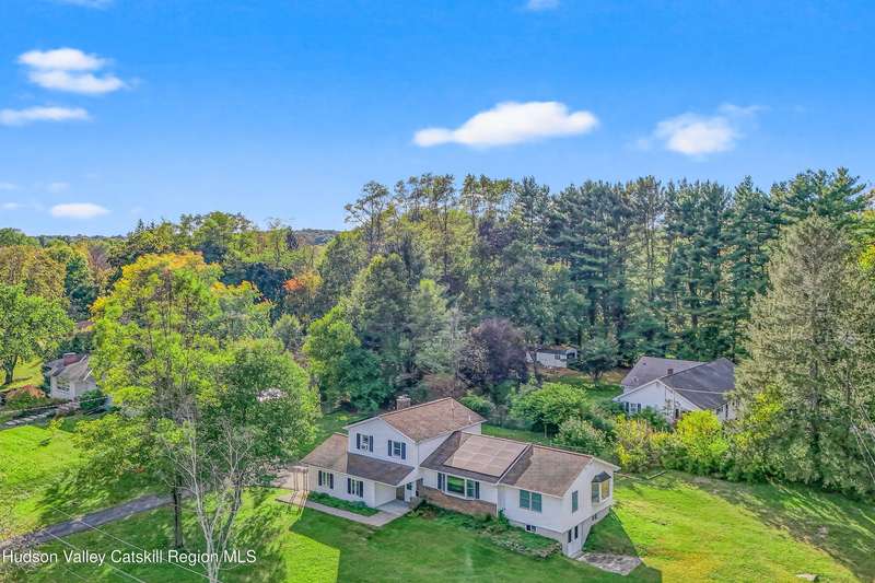 Discover the potential of this charming home located in the heart of Red Hook, NY. Ideally situated on a desirable corner lot, this 3 bedroom, 3 bathroom home provides endless possibilities to create your dream haven. This classic split level offers a perfect blend of comfort and style. As you step inside, you're greeted by the warmth of gleaming hardwood floors that flow throughout the spacious living areas. Large windows flood the space with natural light, creating an inviting atmosphere. The living room has a classic wood-burning fireplace, ideal for cozy evenings with family and friends and French doors which lead to the back patio in a fully fenced yard. The first floor has a versatile room complete with an ensuite bathroom, with its own entrance and deck, providing convenience and privacy for guests or multigenerational living. Upstairs are 3 bedrooms and another full bathroom. Car aficionados will appreciate the two-car garage, and the partial basement offering ample storage space. Situated just moments from local shops, eateries, and parks this property combines small-town charm with convenience.
