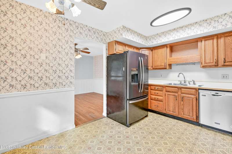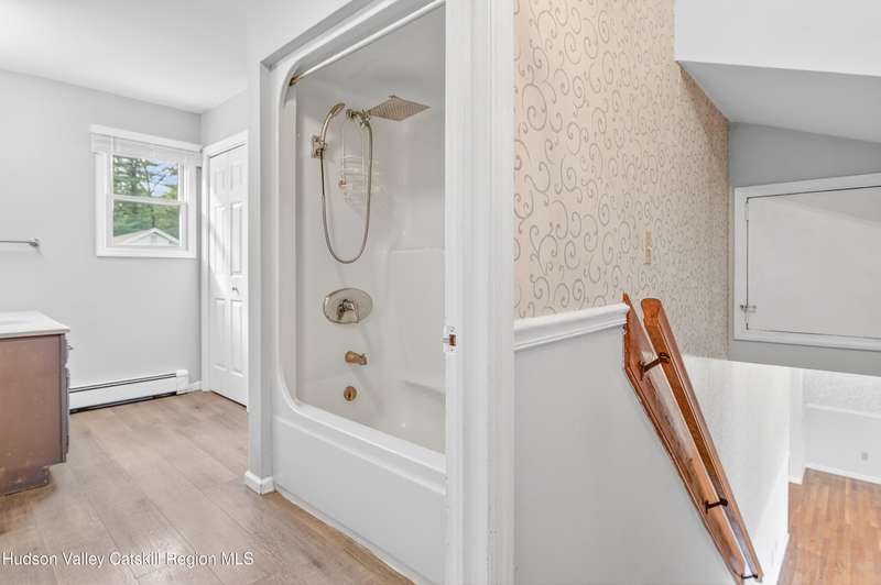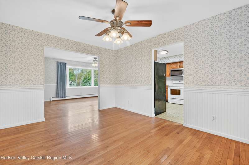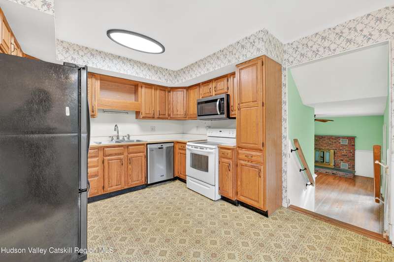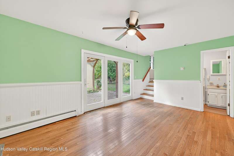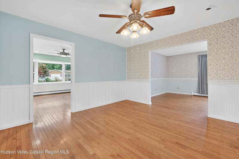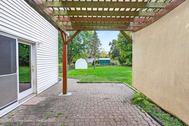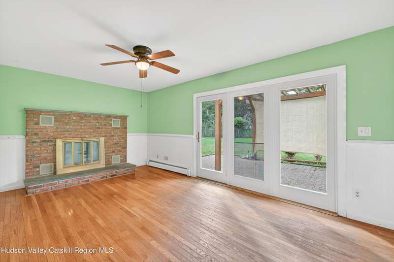 Discover the potential of this charming home located in the heart of Red Hook, NY. Ideally situated on a desirable corner lot, this 3 bedroom, 3 bathroom home provides endless possibilities to create your dream haven. This classic split level offers a perfect blend of comfort and style. As you step inside, you're greeted by the warmth of gleaming hardwood floors that flow throughout the spacious living areas. Large windows flood the space with natural light, creating an inviting atmosphere. The living room has a classic wood-burning fireplace, ideal for cozy evenings with family and friends and French doors which lead to the back patio in a fully fenced yard. The first floor has a versatile room complete with an ensuite bathroom, with its own entrance and deck, providing convenience and privacy for guests or multigenerational living. Upstairs are 3 bedrooms and another full bathroom. Car aficionados will appreciate the two-car garage, and the partial basement offering ample storage space. Situated just moments from local shops, eateries, and parks this property combines small-town charm with convenience.