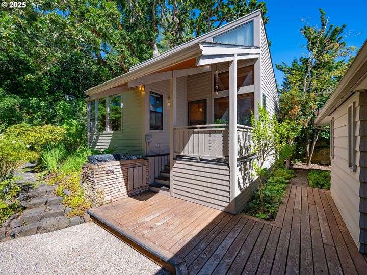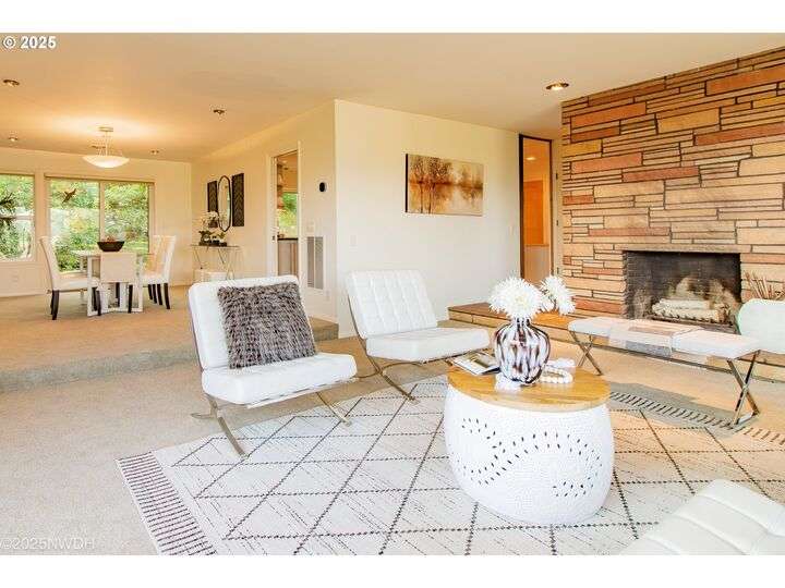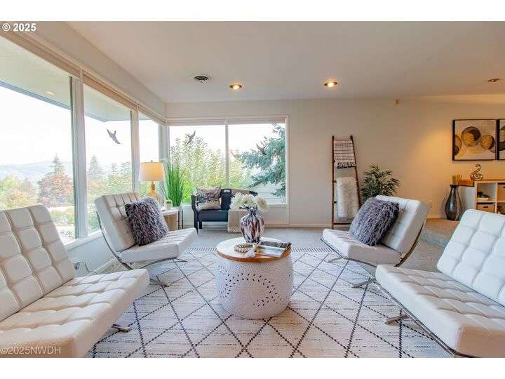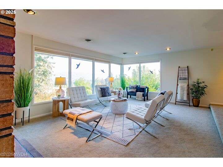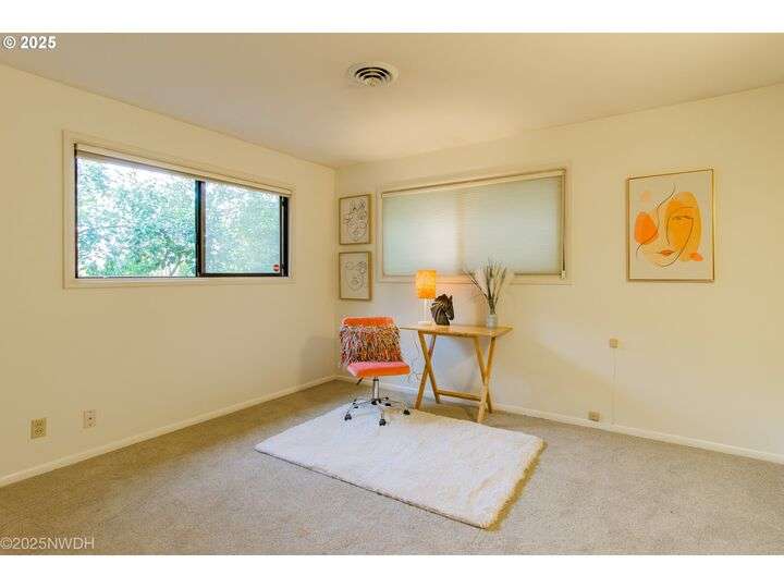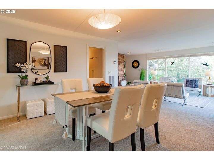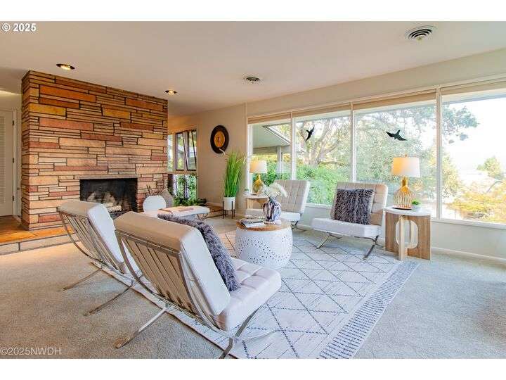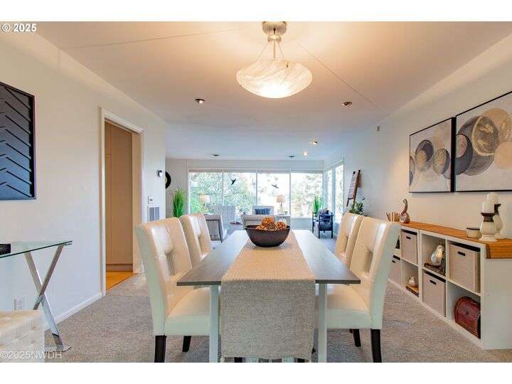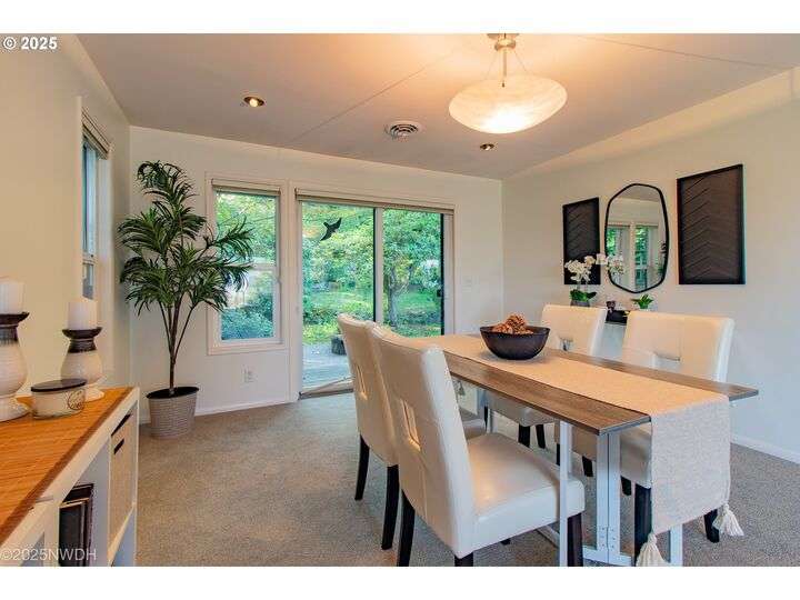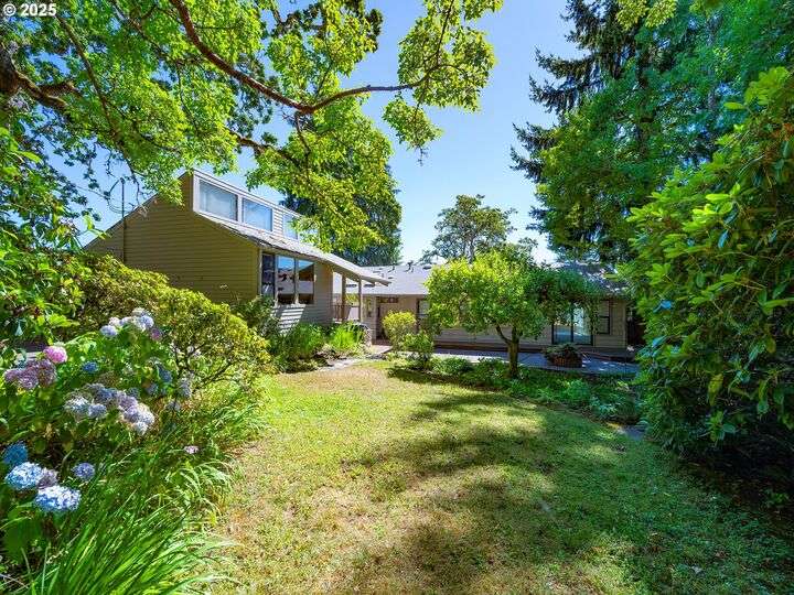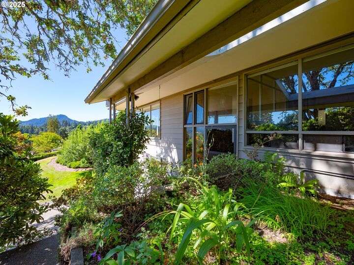 This classic College Hill mid-century home is beautiful, comfortable, inviting, conveniently located and ready to move into. You’ll delight in the open floor plan with expansive windows capturing amazing natural light plus sunrise and moonrise views over the southeast hills. The home is perfect for large gatherings. It has a chef’s kitchen that will delight the most serious of cooks, from the attractive granite counters, abundant work space, large island with bar stools and a second sink, slide in oven/range, wall oven, informal dining area and excellent pantry/storage space. The formal dining room easily seats a large dinner party, plus expansion possibilities into the living room. On the main floor are living/dining rooms, 3 bedrooms and a large study, with the 4th bedroom on the lower level. The interior was recently painted throughout and new carpet was just installed. The details are important, but most of all, it is a wonderful and versatile home. A terrific bonus is the fun and functional 500 sf (not incl in house sf) guest house/home office/studio in the back yard. It has vaulted ceilings, hardwood floors, two rooms, a full bathroom and ductless heat pump. It also includes a porch and large patio. The yard is truly exceptional. It was professionally designed and offers continual blooms throughout the seasons. All perennials and shrubs are mature - the color is unsurpassed!This home is the epicenter of community living. It’s in the Roosevelt/SEHS districts; 29th & Willamette shops, U of O, Amazon Park, downtown, bus line and bike path are minutes away. The combination of a beautiful home, highly desirable location and convenience make this an excellent option. Please arrange your showing, as you will love it!
