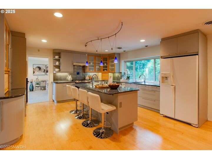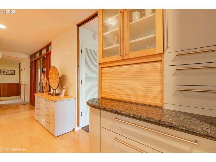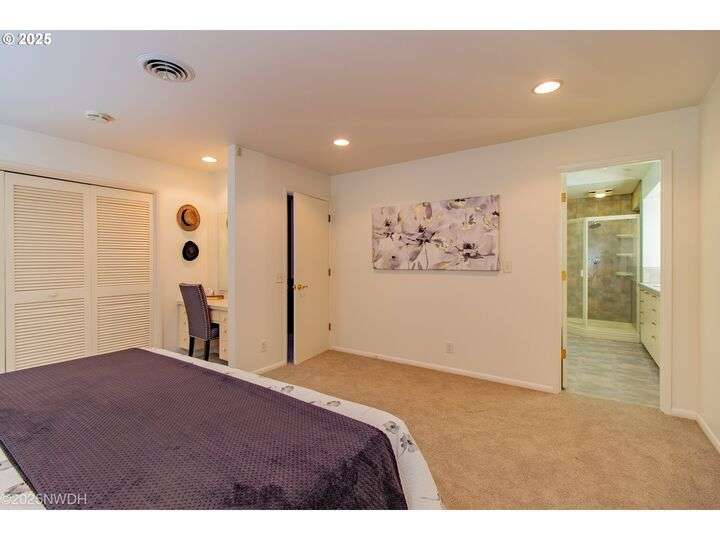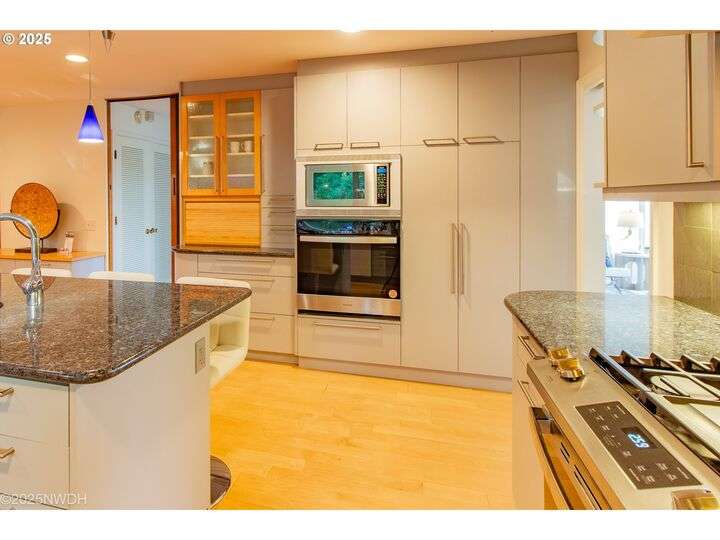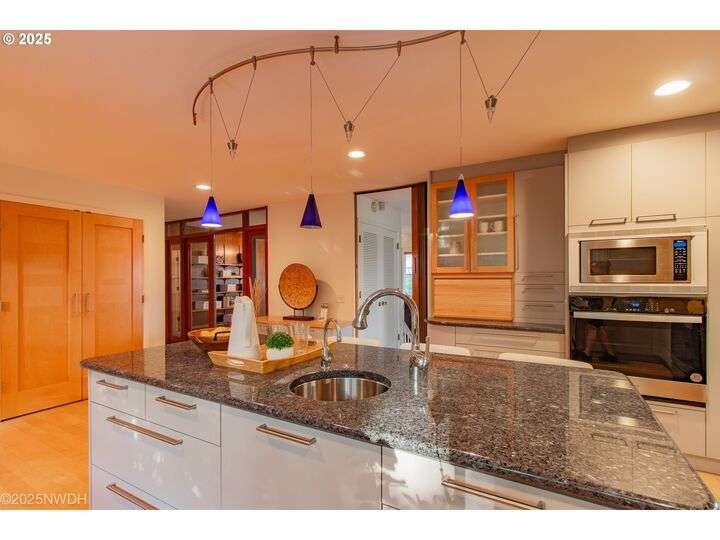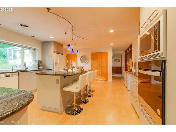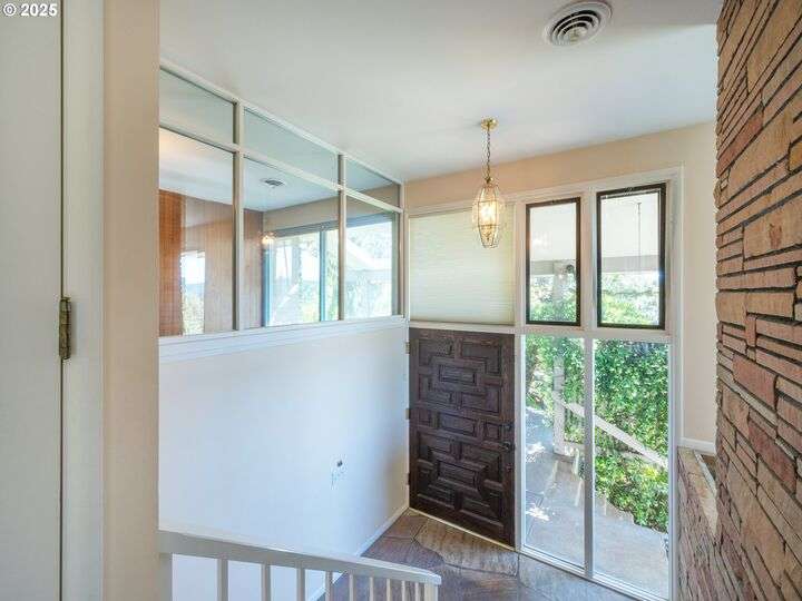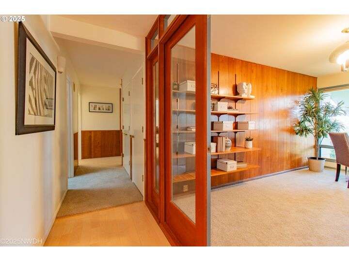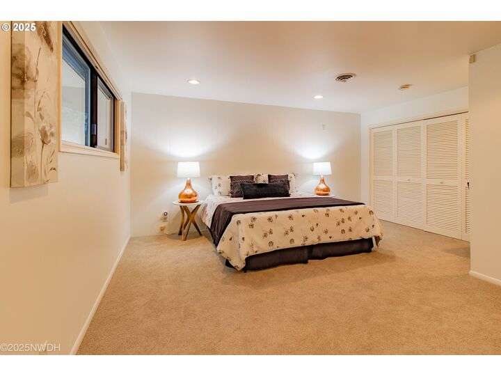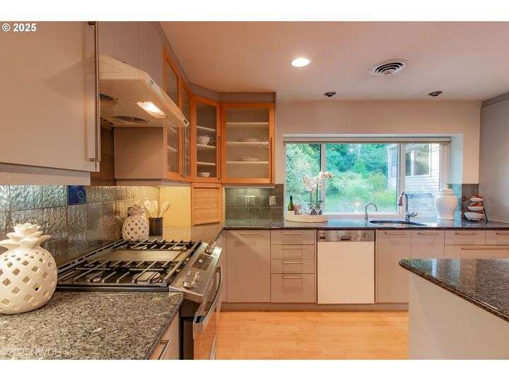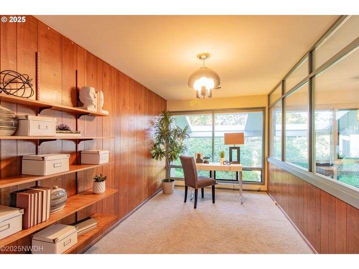 This classic College Hill mid-century home is beautiful, comfortable, inviting, conveniently located and ready to move into. You’ll delight in the open floor plan with expansive windows capturing amazing natural light plus sunrise and moonrise views over the southeast hills. The home is perfect for large gatherings. It has a chef’s kitchen that will delight the most serious of cooks, from the attractive granite counters, abundant work space, large island with bar stools and a second sink, slide in oven/range, wall oven, informal dining area and excellent pantry/storage space. The formal dining room easily seats a large dinner party, plus expansion possibilities into the living room. On the main floor are living/dining rooms, 3 bedrooms and a large study, with the 4th bedroom on the lower level. The interior was recently painted throughout and new carpet was just installed. The details are important, but most of all, it is a wonderful and versatile home. A terrific bonus is the fun and functional 500 sf (not incl in house sf) guest house/home office/studio in the back yard. It has vaulted ceilings, hardwood floors, two rooms, a full bathroom and ductless heat pump. It also includes a porch and large patio. The yard is truly exceptional. It was professionally designed and offers continual blooms throughout the seasons. All perennials and shrubs are mature - the color is unsurpassed!This home is the epicenter of community living. It’s in the Roosevelt/SEHS districts; 29th & Willamette shops, U of O, Amazon Park, downtown, bus line and bike path are minutes away. The combination of a beautiful home, highly desirable location and convenience make this an excellent option. Please arrange your showing, as you will love it!