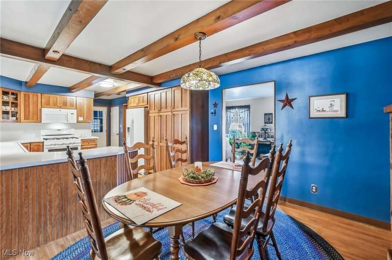 This Boardman home is so charming and has been excellently taken care of by its long-time owners. The exterior welcomes you with a storybook white fence, mature trees, and landscaping, while the home shines with appealing siding, an attractive roofline, and warm colors. A quaint light post accents the entry, and in spring, blooming perennials add fresh color. Brick walkways lead to a patio, landscaped island, fire pit, and sunroom?creating a retreat for relaxing or entertaining. Inside, spacious rooms offer inviting gathering areas and quiet spots for privacy. The kitchen sits at the center of the home with solid cabinetry, pullouts, a pantry, garage access, and open views into nearby rooms. The dining area flows into both the living room and family room, giving the first floor a connected feel. Wainscotting, beamed ceilings, a brick gas fireplace with built-ins, and a bay window overlooking the backyard add charm. The Florida room provides space for furnishings and direct patio access, and a half bath completes the main floor. Upstairs are three bedrooms with ceiling fans, newer windows, and ample closets. The primary includes a walk-in, and a full bath with double sinks serves this level. The finished lower level offers a versatile rec area?ideal for a playroom, teen space, hobby room, or man cave?separate from the utility area with an additional stove, refrigerator, and full bath. This home provides peace of mind through its solid features and updates: Water Heater 2023, Windows 2018, Chimney rebuild from rooftop up 2025, Washer & Dryer 2021, Vinyl Basement Flooring 2023, Garage Glass Block, Keypad & Door Opener 2024, Garage LED Shop Light 2024, Furnace & AC 2017, Roof, Gutters, Guards & Downspouts 2009, Back Fascia 2021, Fresh paint throughout the home and garage including ceilings 2023/2024, Roof freshly power washed, Driveway power washed and sealed 2024. A beautifully maintained home offering comfort, character, and lasting quality?don't miss it!