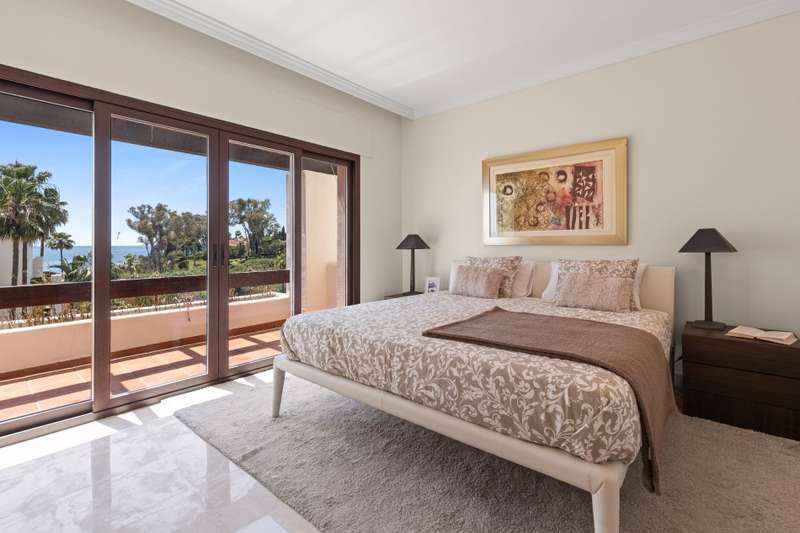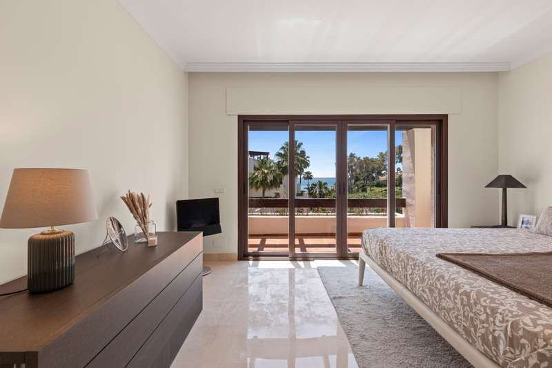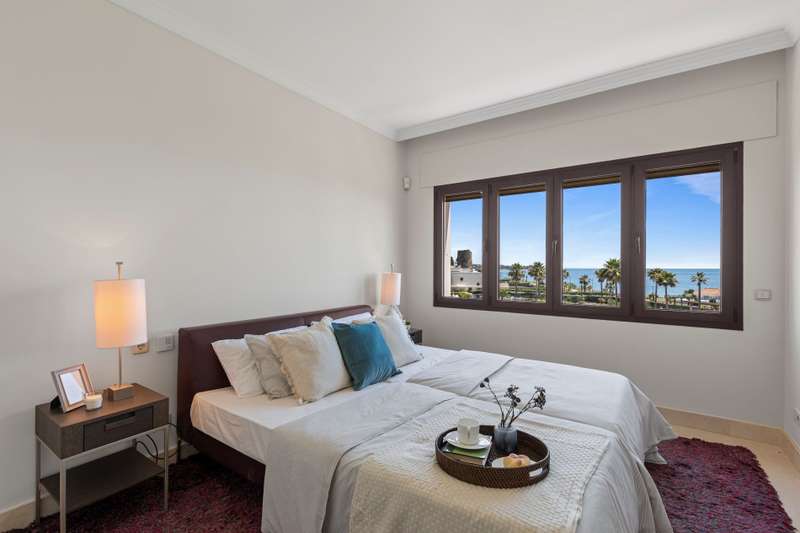 Set within the prestigious beachfront community of Bahía del Velerín, along the New Golden Mile between Marbella and Estepona, this stunning duplex penthouse captures the essence of Mediterranean living: space, style, and endless views. Spread over two levels, the property features a spacious living room, a separate dining area, fully fitted kitchen, utility room, and a guest toilet. All 3 bedrooms offer generous wardrobes and en-suite bathrooms for maximum comfort and privacy. What truly sets this property apart are its three private terraces and a 60 m² rooftop solarium complete with summer kitchen and barbecue, the perfect setting to enjoy life outdoors as part of your daily routine. Here, it’s not just about having sea views, it’s about having the sea as your closest neighbor. The gated community boasts 24-hour security and concierge service, lush tropical gardens, and a spectacular resort-style swimming pool. Residents also enjoy direct access to the beach and the renowned Velerín beach bar&restaurant, one of the Costa del Sol’s top-rated chiringuitos, famous for its fresh seafood, traditional Andalusian dishes, and relaxed atmosphere. The price includes two underground parking spaces and a storage room. A home for those who don’t dream of sailing, but of waking up each day on their own ship, anchored in the sand.