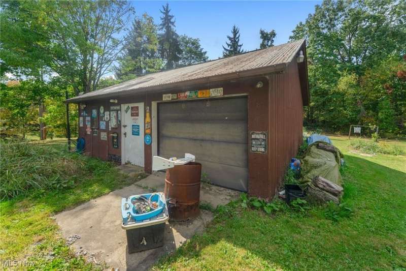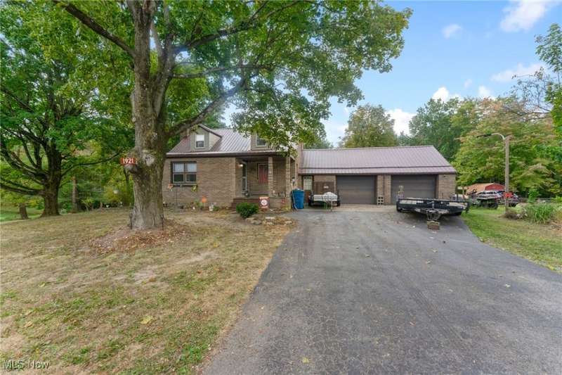 Brick cape-cod home is located on 2+ acres property, where scenic views and privacy abound. New metal roof on home installed in 2021. Large kitchen features ample cabinetry, laminate flooring, and eating area. One bedroom on main level and two bedrooms up. Updated full bath has ceramic flooring, updated vanity, and ceramic tile enclosed shower/tub. The large two-bay attached garage has more than enough room for a workshop area and features separate garage doors w/openers. Large covered back patio ideal for parties and picnics. Extra building with garage door w/opener, wood burner, concrete flooring, attic area, and attached enclosed lean-to. The Big Garage (50x25) with roll-up door was built in 2022, with expansive wide-open space for virtually any project, hobby or storage needs--this building alone could easily accommodate a boat plus four vehicles or more! New furnace and water softener in 2022. Septic system replaced in 2014. Full basement with washer & dryer hook-up area & utility bathroom. Asphalt driveway. Located near to Sharpsville, Sharon, Hermitage, Brookfield, & Warren. When outstanding location, desirable features, a nice piece of land, and price/value all meet, brick homes like this one almost always sell quickly, so act fast--see this home today, then maybe call it home tomorrow!
