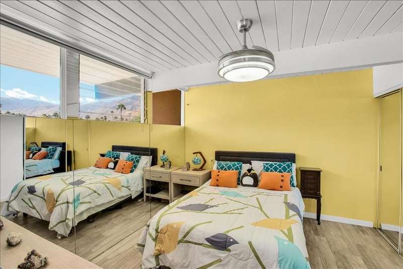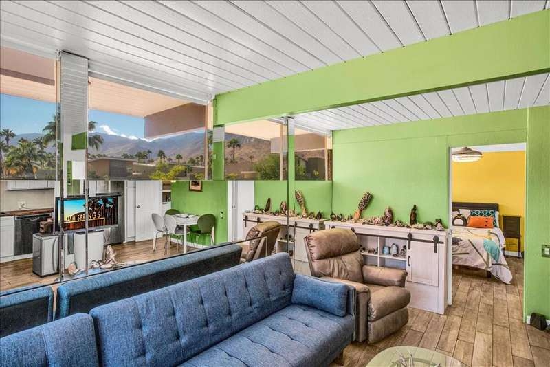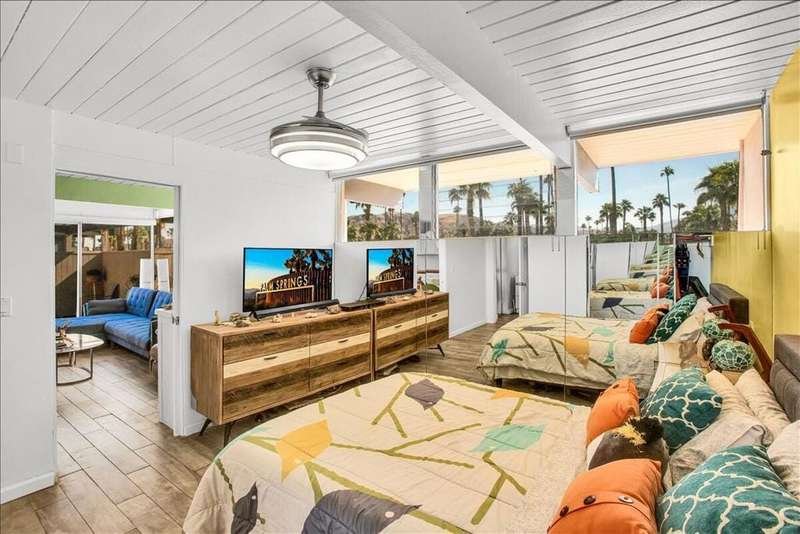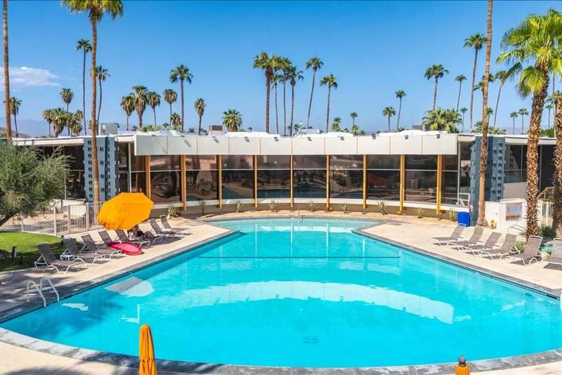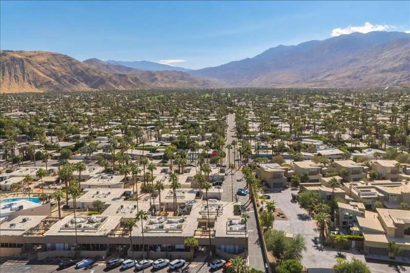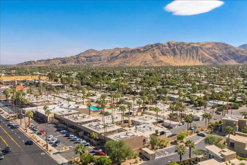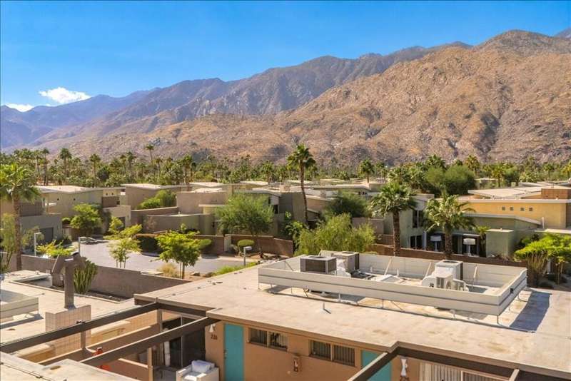 MID-CENTURY MODERN CONDO - STR-FRIENDLY - FEE LAND - Own a piece of Palm Springs history at the Ocotillo Lodge, an iconic mid-century community designed by William Krisel and Dan Palmer, and developed by the Alexander Company in 1956. This top-floor unit offers unobstructed mountain views through clerestory windows and has been fully renovated with new plumbing, electrical, HVAC, kitchen, bath, and flooring--ready for your personal touch.One of the few condo communities in Palm Springs that allows short-term rentals (subject to the city's regulations), and located on fee land, this property offers excellent income potential. Set in the sought-after Twin Palms neighborhood of South Palm Springs, it's just a short walk to dining, shopping, and hotels in a low-wind, highly walkable area.Enjoy resort-style amenities including the famous champagne cork-shaped pool, two hot tubs, fitness center, and clubhouse. The HOA covers all utilities, including electricity. As part of a Class 1 Historic District, the unit may also be eligible for Mills Act tax savings.Whether you're looking for a vacation home, income property, or both--this mid-century retreat delivers.