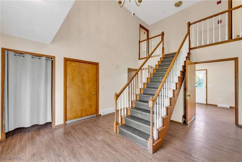 Discover the perfect blend of privacy and convenience with this expansive single-family home nestled on 9 partially wooded acres in Strongsville. Tucked away in a secluded setting yet just minutes from city amenities, this property offers a rare opportunity to enjoy nature without sacrificing access to shopping, dining, and top-rated schools. This spacious home features 5 generously sized bedrooms and 3 full bathrooms, ideal for growing families or those who love to host. The attached 2-car garage adds convenience, while the walk-up full attic provides ample storage space. Inside, the family room boasts a cozy fireplace and a living room separated by French doors. There is a bedroom on the first floor and a separate combined laundry room/ full bathroom. The efficient kitchen flows into a dining space that is great for entertaining. A separate office space or mud room rounds out the first floor. The second floor is spacious and efficiently organized. There are 4 bedrooms and two full baths upstairs, along with a back balcony space. The lower level offers a large unfinished walk-out basement that opens directly to the backyard?perfect for creating additional living space, a home gym, or workshop. Whether you\'re dreaming of a private estate, hobby farm, or simply a quiet place to call home, this property offers endless possibilities.