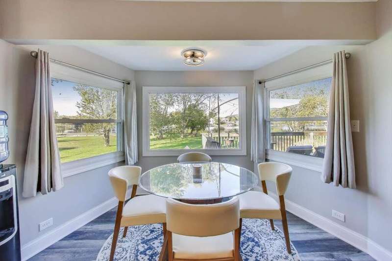 Live every day like you're on vacation on beautiful Fox River! Welcome to Shady Hill, Barrington's most sought after neighborhood, where riverfront serenity meets small town charm. This inviting 3 bedroom, 2 bath home is perfectly perched to capture sweeping views of the Fox River, setting the stage for year-round relaxation and fun. Step inside to a bright and welcoming foyer that opens to an elegant dining room, perfect for hosting gatherings, and a sunlit living room framed by large windows. The kitchen is as functional as it is beautiful, with granite countertops, stainless steel appliances, and an eat-in area that overlooks the water. From here, flow seamlessly into the spacious living/dining room, where sunlight pours in and every window reminds you that you're living somewhere special. The great room is the perfect addition for gatherings and entertaining. Unwind in the impressive primary suite featuring a custom walk-in closet. Two additional bedrooms offer generous space and share a well-appointed hall bathroom. Downstairs, the unfinished basement provides tons of storage solutions to keep you organized. Step outside to your newer expanded deck and take in the view; one of the best on the river! With one of the largest sand beaches on the lower Fox just steps away, and your own boat ramp about 100 feet from your door, this neighborhood is made for those who love the water. Bring your golf cart, your paddleboard, and your sense of adventure, this is the lifestyle people dream about. Shady Hill offers a true community feel, with voluntary association access to boat slips, an exclusive beach, and direct connections to scenic bike trails and the Grassy Lake Forest Preserve. Minutes to the Metra and top-rated schools including Roslyn Elementary, Barrington Middle, and Barrington High School. Here, you will find more than a home, you will discover a whole lifestyle. Welcome home!