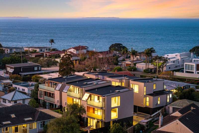 Welcome to Beachside living, a place where nature and architecture coexist. Discover a boutique development of five meticulously crafted premium homes, harmoniously blending nature and architecture to create a truly exclusive sanctuary. Enjoy breathtaking views of Rangitoto Island and the city skyline from this prestigious location. Each of these architecturally designed homes exudes sophistication with a focus on quality design, abundant natural light, and timeless modern finishes. The gourmet kitchen showcases a premium Italy Natural Stone benchtop and Island breakfast bar, perfect for culinary enthusiasts and entertainers alike. Property Features: - Three or Four bedrooms, three bathrooms, separate laundry, and powder room - Standalone three-level design with a lift for convenience - Seamless indoor-outdoor flow to a semi-enclosed deck with mesmerizing sea views/city views - Designer kitchen with a walk-in butler’s Kitchen - Spacious master retreat featuring a walk-in wardrobe and luxurious ensuite - Elegant cobblestone flooring in the entrance area - Full insulation for superior comfort - Premium double-glazing throughout - Samsung digital lock for added security and convenience - Exquisite finishes including natural stone benchtops, Kitchen Island, and fully tiled bathrooms - Just a 2-minute drive to Narrow Neck Beach and Waitemata Golf Club - Walking distance to top schools such as Belmont Primary, Belmont Intermediate, and Takapuna Grammar Situated in a highly sought-after location with proximity to pristine beaches, top-rated schools, local amenities, and convenient transport links, this home offers the perfect blend of luxury and lifestyle. Whether you seek a peaceful retreat or a vibrant hub for entertainment, this property caters to all your needs. Don't miss the chance to experience the epitome of North Shore living. Visit us today and witness the unparalleled charm and elegance this residence has to offer. Your dream home awaits.