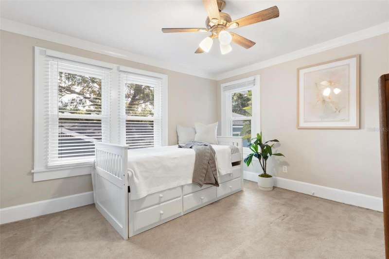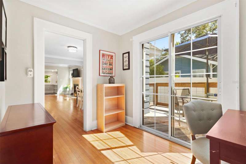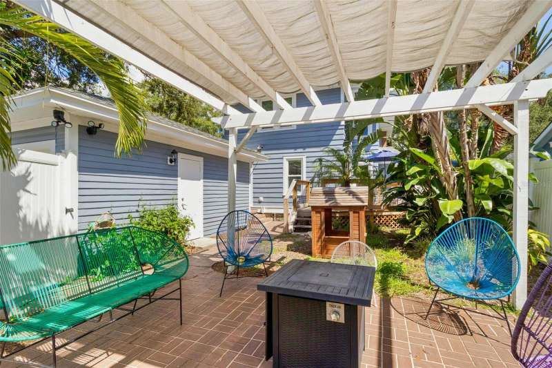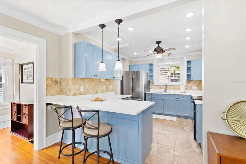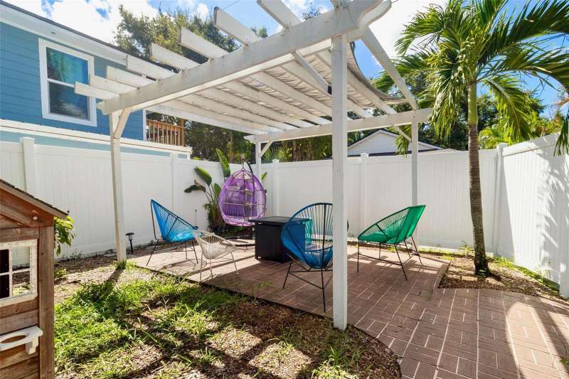 Nestled in the heart of the highly sought-after Historic Old Northeast, this beautifully updated 3-bedroom, 2-bathroom home offers a perfect blend of historic charm and modern convenience. With 1,878 square feet of living space, including a bonus room, this home offers a spacious footprint and is designed for comfortable living and easy entertaining. The kitchen, featuring serene coastal blue cabinets and gleaming white quartz countertops, provides a fresh, inviting space for culinary creativity. Beautiful hardwood floors grace the main living areas, where natural light pours in through abundant windows, highlighting the cozy wood burning fireplace in the living room. Recent updates include a tankless water heater, whole house water filtration system, and hurricane-grade windows. The exterior was freshly painted in 2023, and a new deck was added, creating the perfect spot for outdoor relaxation and entertaining. The home is complete with roomy bedrooms, a stackable washer/dryer closet, and a backyard perfect for hosting gatherings, featuring the aforementioned new deck and a pavered area under a covered pergola. The vinyl fenced-in yard offers privacy, and wooden double gates leads to an elongated parking pad, ideal for additional parking or storing a boat or RV. Stunning curb appeal welcomes you to this charming property, and the location couldn’t be better. Situated on the north end of Historic Old Northeast, you’ll enjoy easy access to a vibrant community with tree-lined streets, historic architecture, local parks, and proximity to the St. Pete Pier, museums, dining, and shopping. This home combines modern updates with timeless charm, offering the best of both worlds in a prime St. Petersburg location.