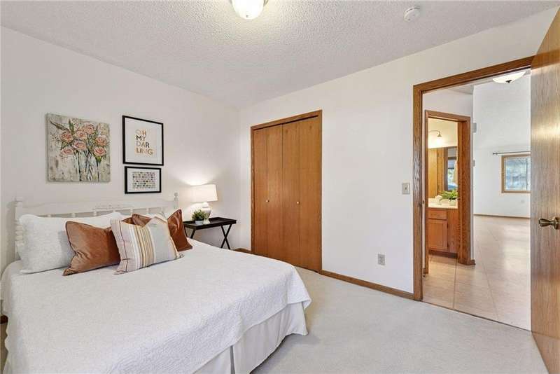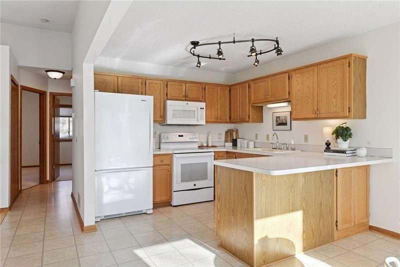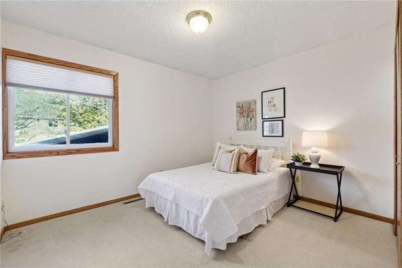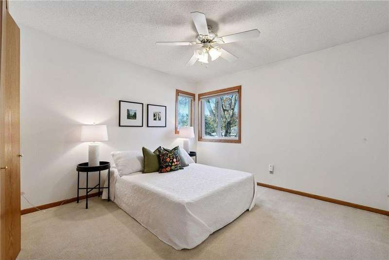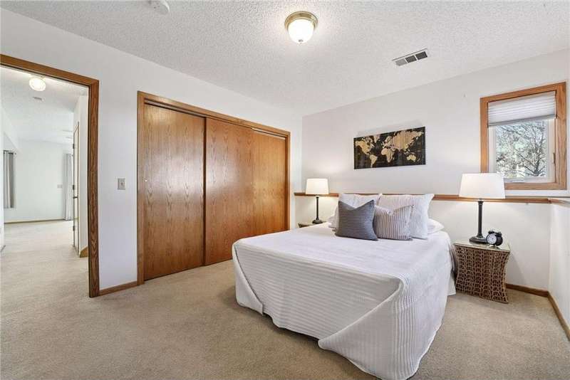 A lovely end unit with great natural lighting! 3 beds/2 baths with neutral flooring and wall paint. The open-concept living room, dining room, and kitchen allow for easy entertaining of friends and family. The home features two bedrooms and a full bathroom on one level. Lower level features a large 3rd bedroom, 3/4 bath, and an amusement room. The amusement room combines built-in cabinetry and storage with a flex space to use as you need it - office, play area, crafting, etc. This townhome is well-appointed with updates, a timeless floor plan, and abundant storage throughout the home. The deck and patio provide wonderful spaces to enjoy the backyard. Updated windows, roof, doors, and mechanicals allow for ease of living. This townhome is conveniently located near the guest parking area. Great location!