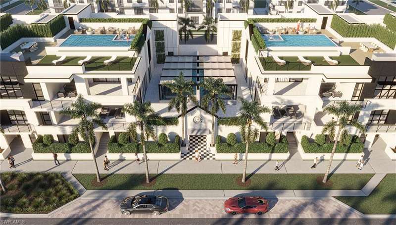 Introducing The Huxley Naples, a limited-edition collection of only eight modern residences, built around a dynamic mix of privacy and luxury. Residence 302 is a meticulously crafted floorplan inclusive of a 3,733 sq. ft. under air, three bedrooms, three full baths and one half bath, Grande suite, Club room with wet bar, walk-in-pantry and stunning Great Room made for entertaining friends and family. The design aesthetic of The Huxley is one of balance between light and shade, wood and stone, indoors and outdoors, and a palette of contrasting tones that is both captivating and timeless. State-of-the-art appliances by Wolf and Subzero pair with natural stone, warm wood cabinetry, antiqued metal fixtures, and wide-plank European oak flooring. A private four-car garage with lift capabilities, smart-home integrated technology, private elevator, back up whole house generator and vast 3,040 sq. ft.+/- private rooftop with pool, spa and outdoor kitchen complete this Olde Naples masterpiece