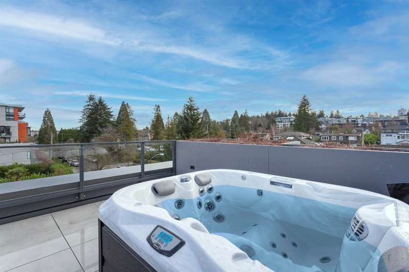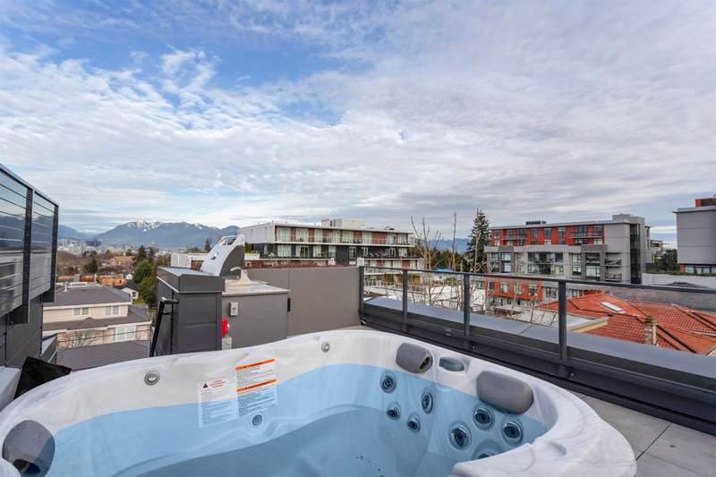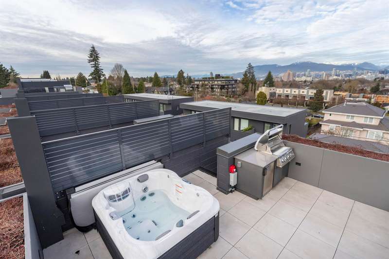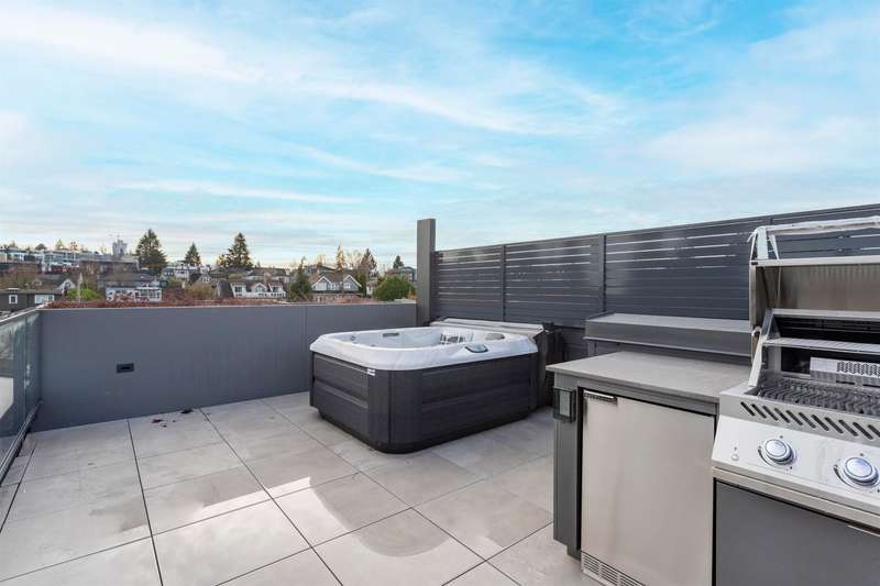 MOVE-IN READY | Step into elevated living with this corner 4-bedroom, 3-bathroom townhouse at Seasons by Sightline Properties—the final home available in this coveted community. Upgraded with $45K in premium features, the 1,701 sq.ft. layout spans four levels and features a spectacular rooftop deck with hot tub and outdoor kitchen. The main level offers a modern kitchen with Miele appliances, gas range, and sleek finishes flowing into bright living and dining areas. Upper levels include spacious bedrooms and a serene primary suite with views, and spacious walk-through closet complete with a custom built-in wall with a safe. The lower-level flex room provides added versatility. Enjoy A/C, EV-ready parking, option for a second stall, and peace-of-mind new home warranty.