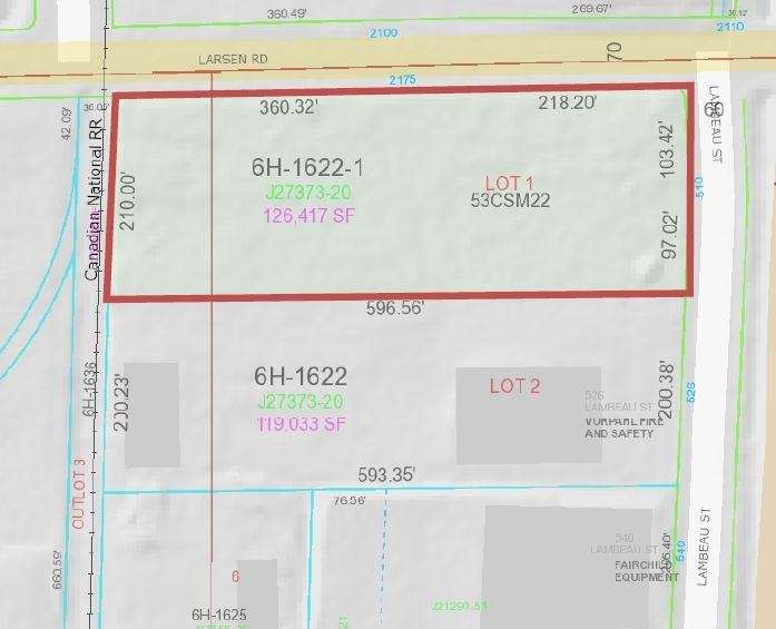 High-visibility commercial lot at the corner of Lambeau St. and Larsen Rd. with direct exposure to Interstate 141, where traffic counts average 92,200 vehicles per day (per WisDOT). This prime Green Bay location is surrounded by long-established business, including service and retail, making it ideal for new development or expansion. Excellent visibility, strong traffic flow, and easy access create endless opportunities for your next venture.