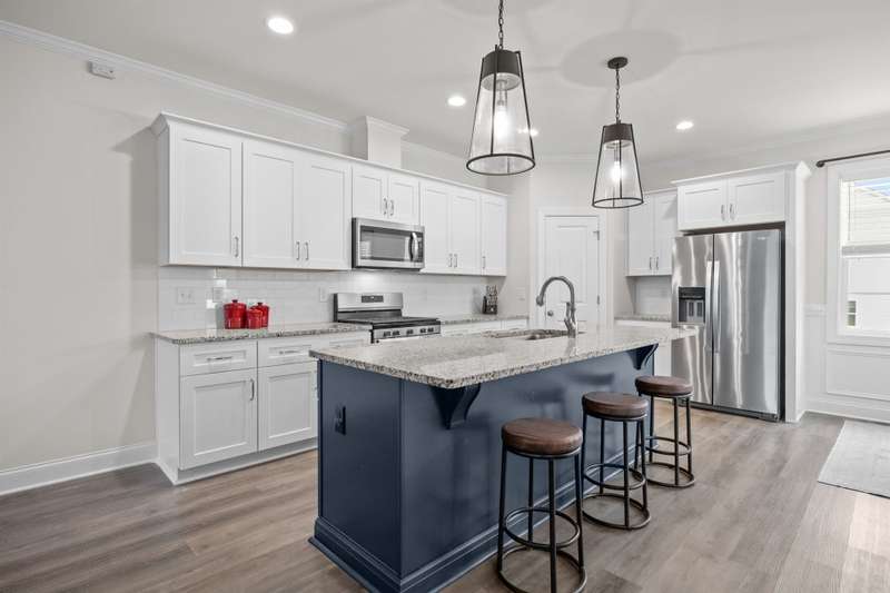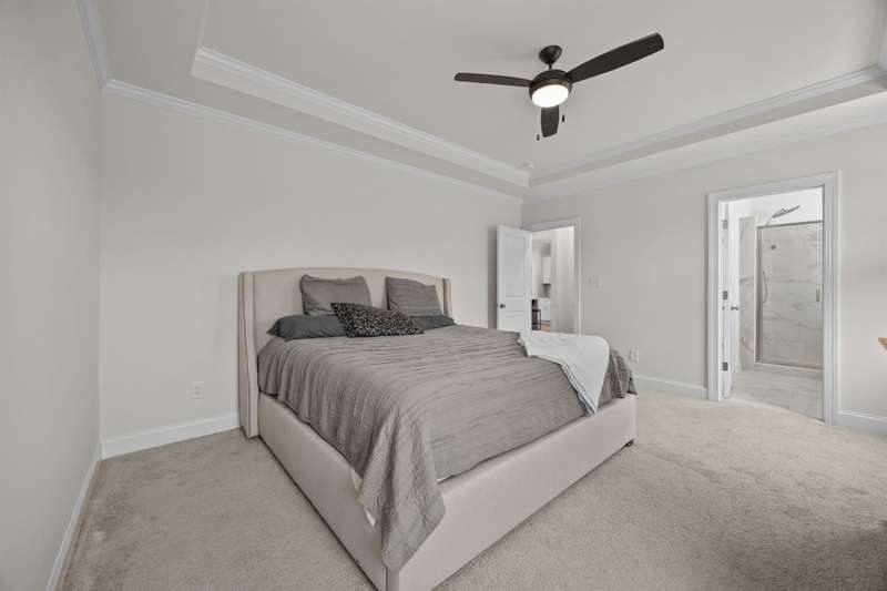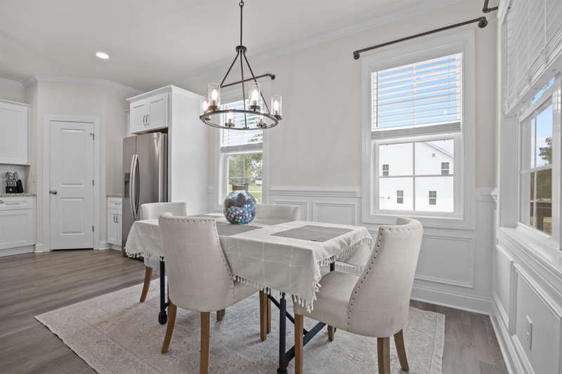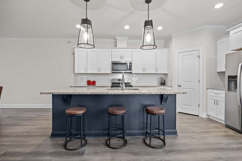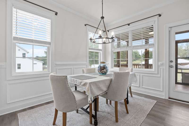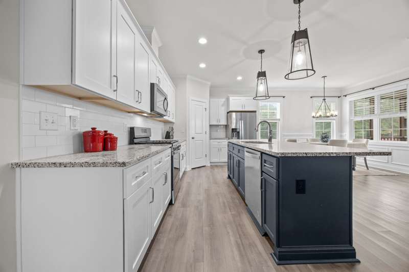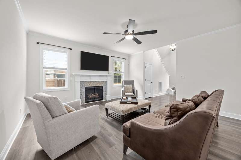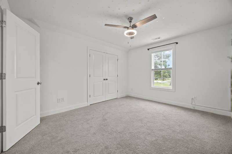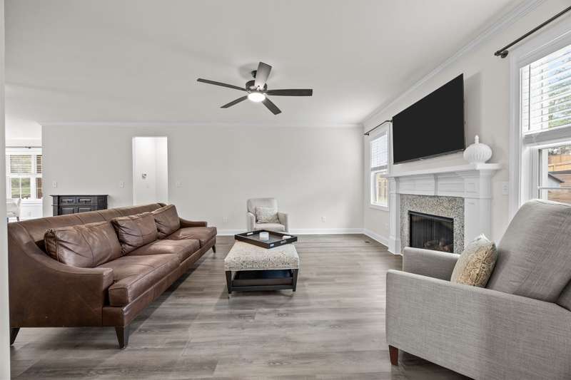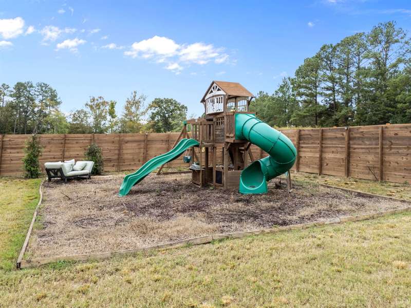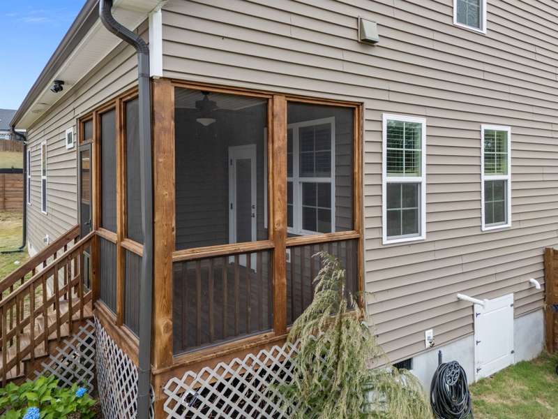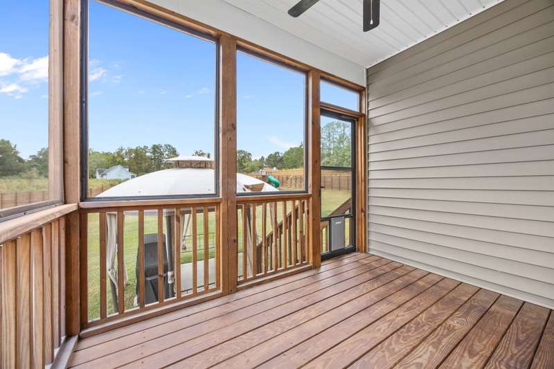 This beautiful custom home, built by Matt Baldwin Homes, offers almost 2,500 square feet of comfortable living space with 4 bedrooms and 2.5 bathrooms. A bright kitchen with white flat-panel cabinets, granite countertops, a center island, stainless steel appliances, and a corner pantry. A spacious suite with a tray ceiling and an adjoining bath featuring tile floors, a dual vanity, and an oversized walk-in shower with a rainfall shower head. A cozy family room with crown molding, luxury vinyl plank flooring, a gas log fireplace, and wiring for a flat-screen TV. A screened porch with a doggy door leading to a grilling patio, overlooking a large fenced backyard with a playground area. Situated on a spacious 0.70-acre homesite, it features a fully fenced backyard, perfect for outdoor activities. You'll enjoy a quiet country setting with no city taxes, yet remain conveniently close to city amenities and major highways like I-540.
