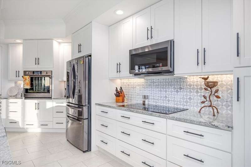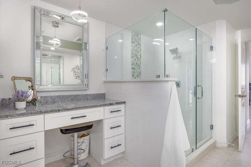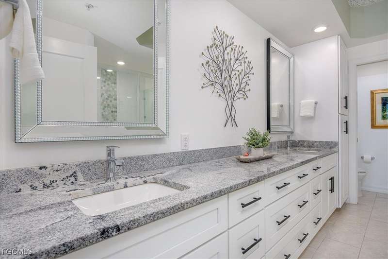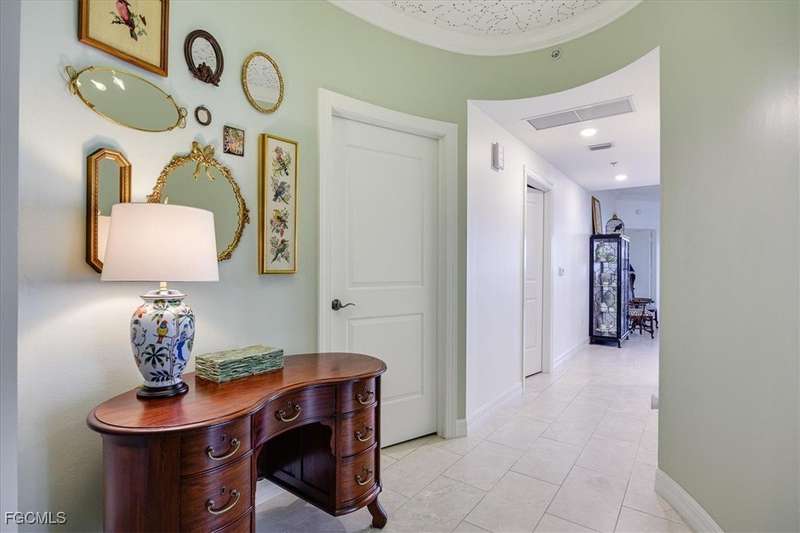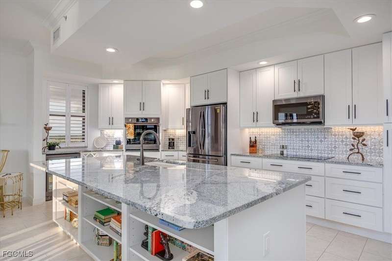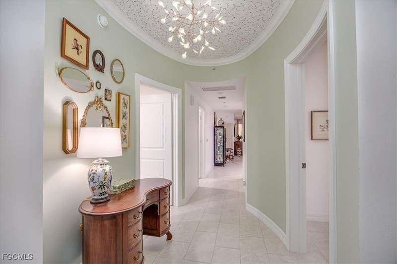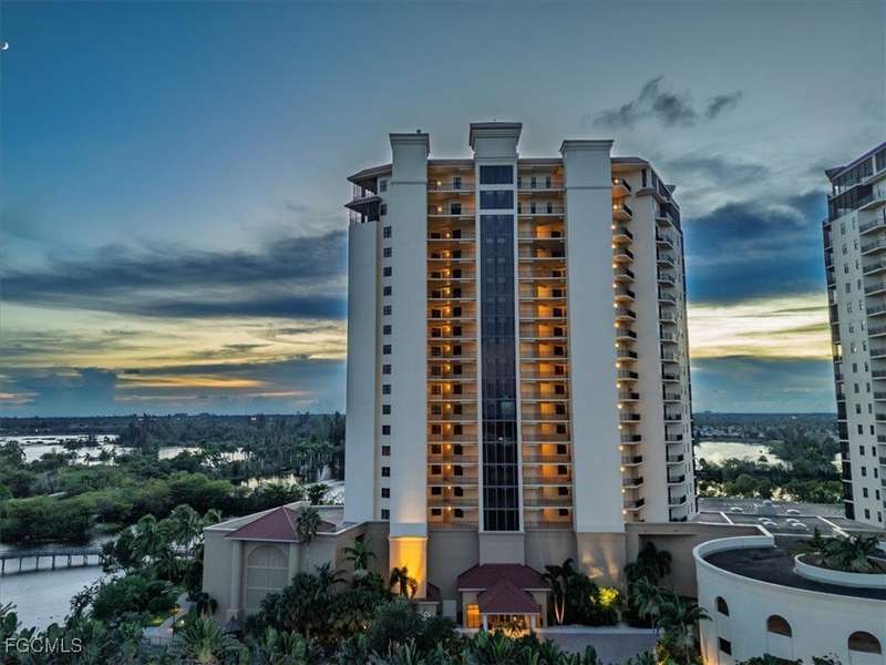 Experience unmatched sophistication and effortless living in this beautifully reimagined residence, perched on the 11th floor of the South Tower at Riva Del Lago. Completely renovated with thoughtful attention to detail, this home showcases sweeping panoramic views of Lakes Park, reaching all the way to the coast. Spectacular sunsets and dazzling nightscapes unfold daily through soaring ceilings, expansive windows, and oversized doors. Every inch of this home has been upgraded-from floor to ceiling-with an emphasis on high design, functionality, and top-tier quality. Elegant porcelain tile flows seamlessly throughout, including the lanai. Soft, refined wall tones, designer wallpaper accents, custom lighting, and mirrors add a sophisticated touch to every space. At the center lies a chef's dream kitchen, perfect for cooking or entertaining, with custom walnut cabinetry, stone countertops, and a chic patterned backsplash. The open layout enhances the natural light and maximizes the awe-inspiring views. With three spacious bedrooms-including two with ensuite baths-every bathroom features premium fixtures and finishes. The enlarged primary shower and added storage blend luxury with practicality. A generous laundry room with utility sink, custom closets, a state of the art whole-home water filtration system, new HVAC, water heater, and appliances ensure comfort and peace of mind. Beyond the impact windows and doors, sellers have added electric rolldown shutters to protect the lanai and its contents. Riva residents enjoy BLAZING FAST Bluestream fiber for internet and cable, resort-style amenities including resort infinity pool, 2 hot tubs, lighted tennis court, fitness center, game/social room, billiards room w/bar & kitchen, business center, gazebo w/gas grills, private gated boardwalk access to Lakes Park, kayak storage and kayak launch ramp. Located in the heart of Fort Myers, yet minutes from beaches, golf, shopping, and the airport-this sky-high retreat is perfect for those seeking elevated, turnkey living. Seller Financing Available