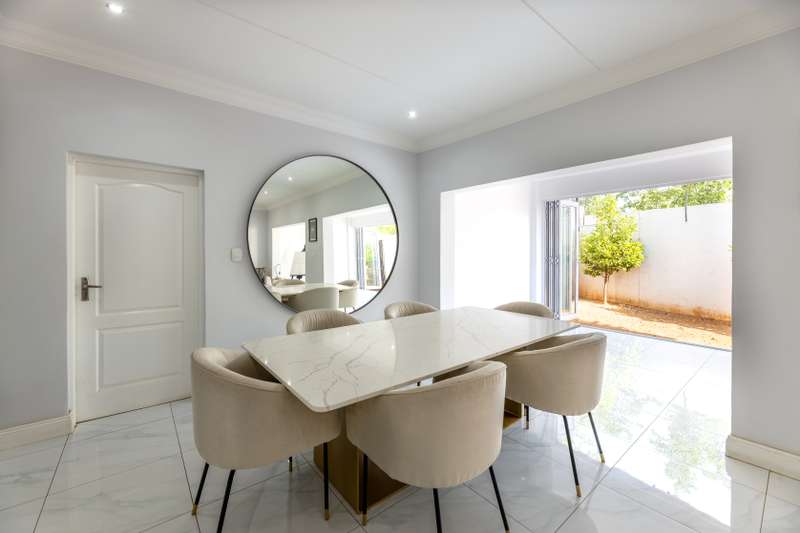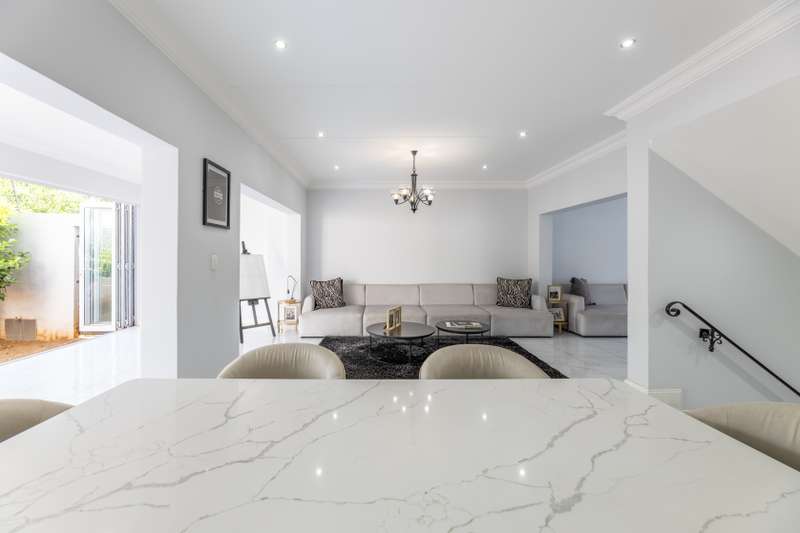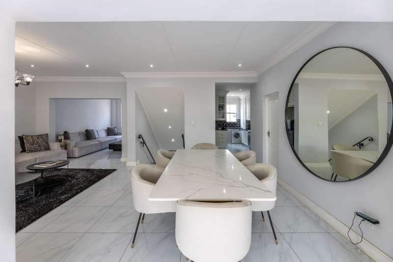 Exclusive Lifestyle! Seller Considering Reasonable Offer! Set in the lush and sought-after suburb of Bryanston, this classic 3 bedroom, 3.5 bathroom townhouse represents the perfect fusion of luxury, comfort, and convenience. Designed for modern urban living, this home offers spacious interiors enhanced by a thoughtful architectural extension. Upon entry at the lower level, you’re welcomed by a versatile garage space with dual entrances accommodating up to four vehicles. Additional room is available for a motorbike, trailer, or to be repurposed into a private gym, storeroom, home office, or study. The main living area, situated on the next level, showcases a beautifully designed kitchen featuring top of the line SMEG appliances, a gas hob, extractor fan, sleek quartz countertops, and a generous scullery with space for three appliances. The open-plan dining and lounge area boasts high ceilings, creating an airy, inviting atmosphere ideal for entertaining. A guest cloakroom adds to the convenience. Upstairs, three well proportioned bedrooms await. Two feature en-suite bathrooms, while a third full bathroom serves the remaining room. The expansive main suite offers a tranquil retreat, complete with ample cupboard space and a luxurious full en-suite bathroom. This property offers the perfect blend of architectural elegance and everyday functionality, making it ideal for a secure, lock up and go lifestyle. Located in one of Bryanston’s most desirable neighbourhoods, the townhouse enjoys close proximity to top rated schools, premium shopping centres, fitness facilities, fine dining, and offers easy access to major highways. Don't miss out on this exceptional opportunity! contact me today to arrange your private viewing and secure your next home.