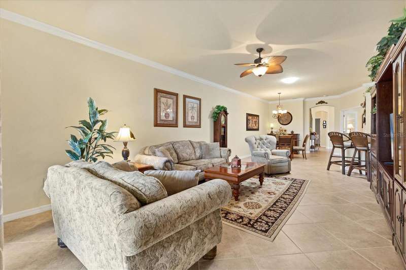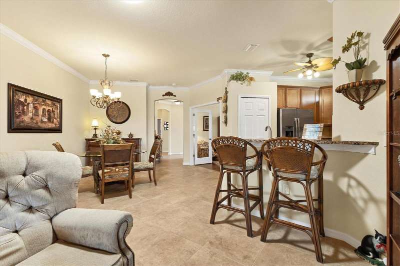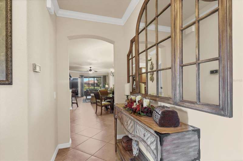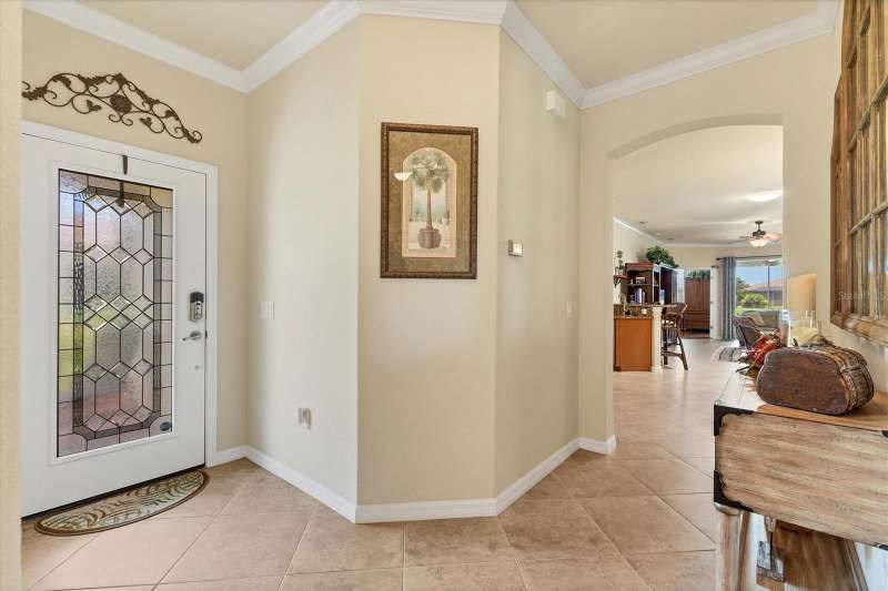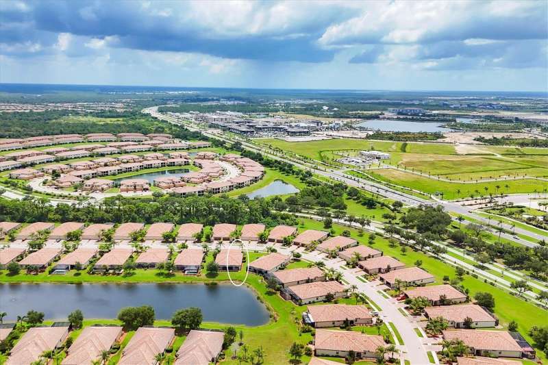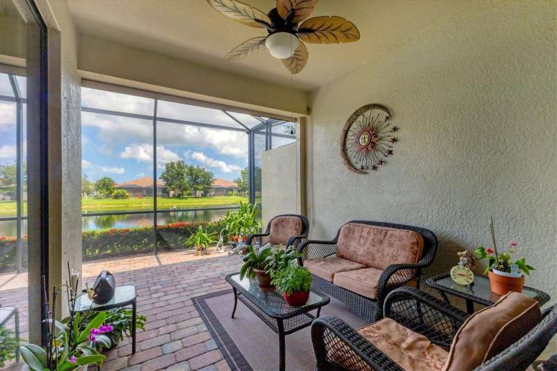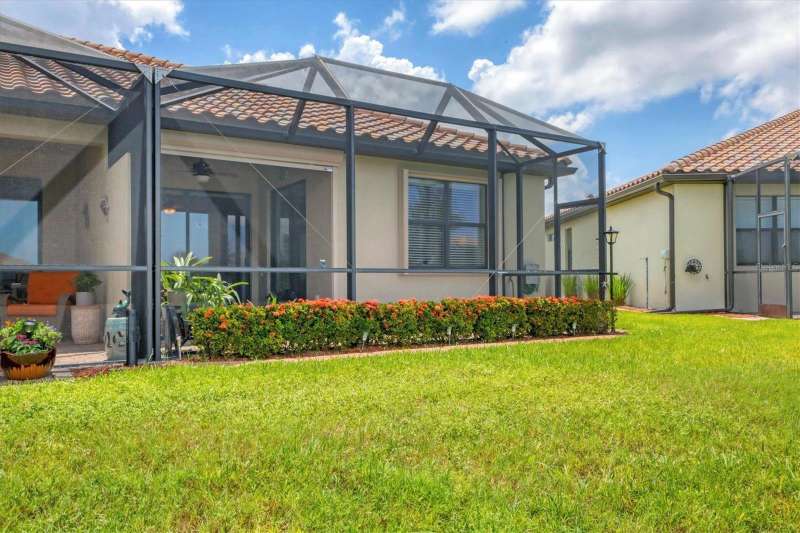 Welcome to Paradise in Gran Paradiso's Villagio. Well taken care of Villa with a gorgeous Pond View. Fall in love with this highly sought-after, resort-style community of Gran Paradiso’s Villagio in The West Villages in Wellen Park. Offering nearly 1,600 sq. ft. of well-designed living space, this 2-bedroom, 2-bath plus a den/office villa is perfect as a year-round residence, seasonal getaway, or investment property. Step inside to find an open, split floor plan that provides comfort and privacy for you and your guests. The inviting interior boasts Florida-inspired paint hues, crown molding throughout the home, adding a touch of elegance and charm. Skylights flood the space with natural light, creating a bright and welcoming ambiance throughout the day. The spacious kitchen features: Granite countertops, tumbled marble tile backsplash, stainless steel appliances, ample cabinet storage, breakfast bar overlooking the open dining and living areas. Enjoy indoor-outdoor living with sliding glass doors that open to your extended screened lanai—perfect for relaxing with a pond view and Florida sunshine. The primary suite is a private retreat with an en-suite bathroom, dual sinks, private water closet, large soaking tub, and walk-in tiled shower. Additional features that make this villa stand out from the others include a 2-car attached garage, a dedicated laundry room with built-in sink and cabinetry, outside curbing and landscaping, accordion pull down storm shutters on lanai, front door and all windows, 2 tubular skylights which fill the living room and guest bath with light even on rainy days, engineered hardwood in primary bedroom and den, paddle fans in both bedrooms, den, living room, and kitchen, beautiful pond view with an extended lanai, and a 220V outside outlet installed for a generator for your peace of mind. Also, newer microwave, garbage disposal and washing machine! Community Highlights: Gran Paradiso offers a vibrant lifestyle with world-class amenities, including: Resort-style pool & spa, Full clubhouse with a state of the art fitness center, pickleball, tennis, and basketball courts, walking and biking trails, and on-site activities director, and cable & internet all included in the HOA! Located just minutes from downtown Wellen Park (dining, shopping, concerts, and yoga on the great lawn), CoolToday Park, and spring training, home of the Atlanta Braves. Venice’s pristine beaches and historic downtown are just 20 minutes away. Enjoy the ultimate Florida lifestyle with peace, tranquility, and pond views, all in a maintenance-free, gated community. Just bring your bathing suit—this villa is ready for you! The villas were painted in 2024 and roof cleaned in 2024. NOTE: CDD fee of $1,629.67 is included in the taxes. HOA fee also includes cable and internet. Welcome Home to Gran Paradiso—where every day feels like a vacation!