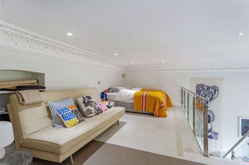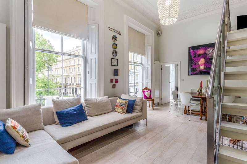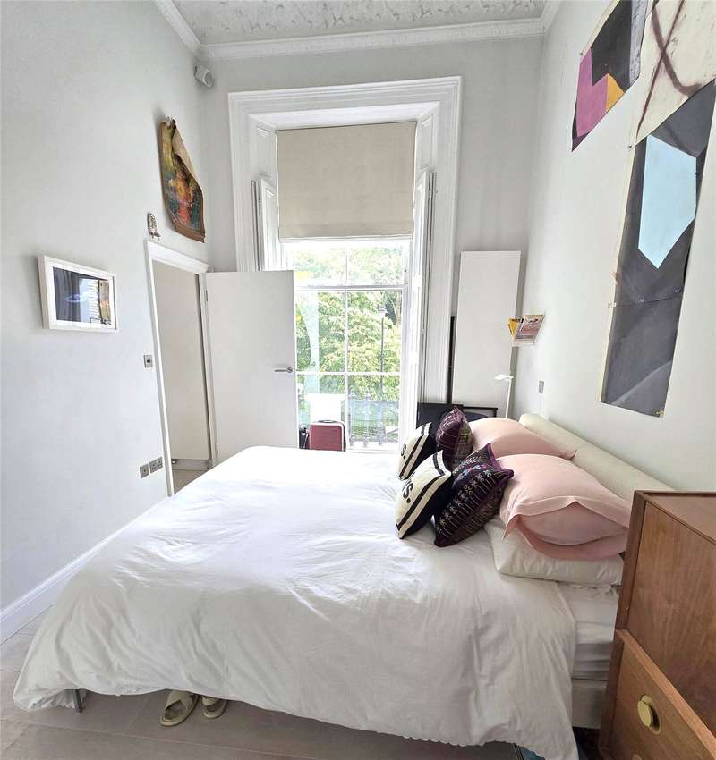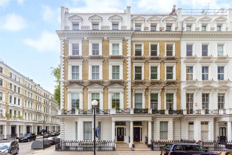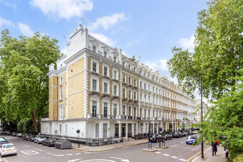 A rare first floor apartment with 13 foot ceilings and three front facing sash windows overlooking trees and park, and with access to the award winning Courtfield Gardens West. Lift access and front balcony.