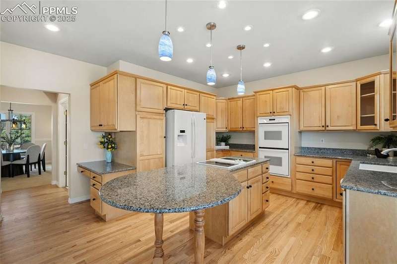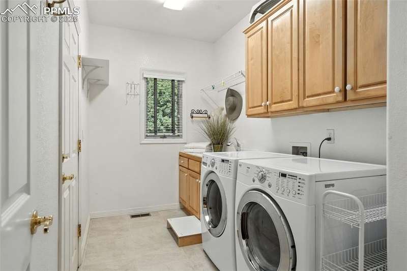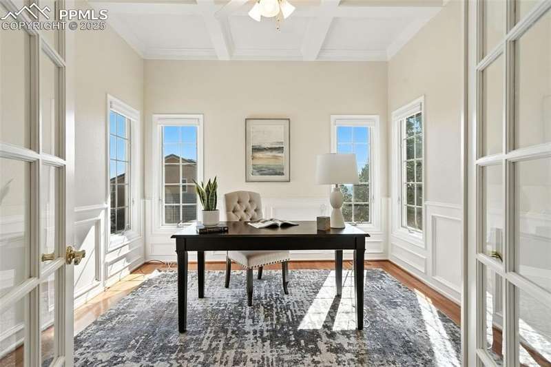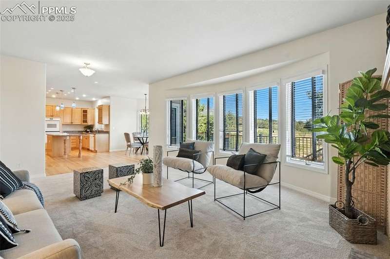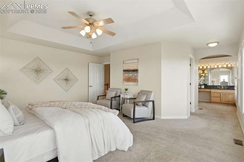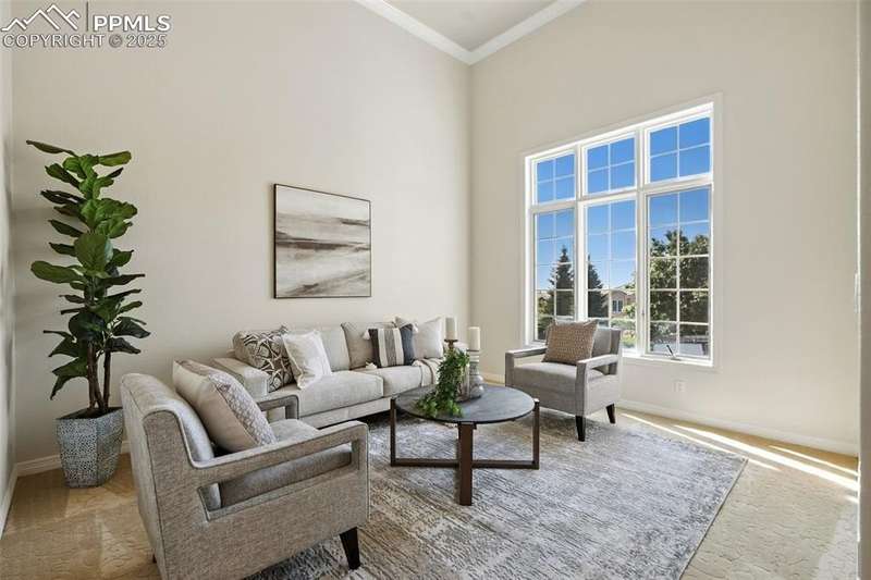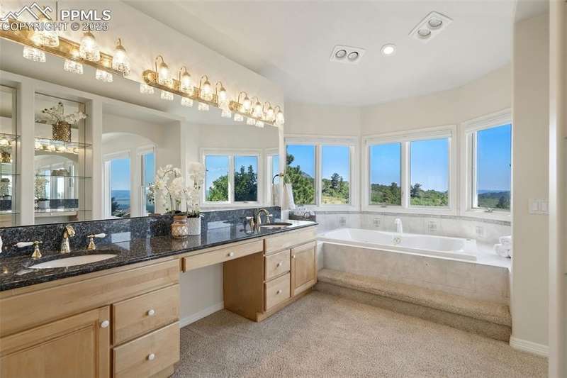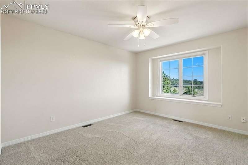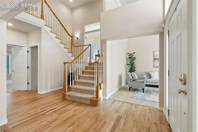 Your Dream Home Awaits! Nestled in the highly sought-after Peregrine neighborhood in NW Colorado Springs, this extraordinary 6-bedroom, 5-bath residence redefines luxury living with its sweeping mountain and city views. Spanning 4,507 square feet, the home perfectly balances elegance and functionality in one of Academy District 20’s most desirable communities. Freshly painted throughout, this home welcomes you with soaring ceilings, hardwood floors, and a dramatic staircase. The spacious dining and living rooms set the tone for gatherings, while the sun-filled family room (don’t miss the sizable hidden storage!) impresses with oversized windows, a cozy gas fireplace, and captivating views of the city, mountains and Air Force Academy. The kitchen is a true entertainer’s delight, offering stone countertops, sleek cabinetry, and an island designed for conversation and function. The floor plan shines with thoughtful touches, including a private office just off the staircase and expansive windows framing views in every direction. Upstairs, the primary suite is a retreat with breathtaking panoramas, a spa-like 5-piece en suite, and walk-in closet. A junior primary with updated bath, two additional bedrooms with a shared Jack & Jill bath, plus tasteful updates throughout elevate the home. The walk-out basement offers two more bedrooms, a full bath, and a large recreation room ready for movie nights, workouts, or hosting guests. Outside, a newer 40x20 composite deck provides the perfect vantage point for enjoying both mountain views and city lights. The lot is a rare find, backing to the AFA for maximum privacy while offering usable yard space for play, gardening, or relaxation. Additional features include updated light fixtures, central AC, security system, and oversized 3-car garage with storage. With neighborhood parks, ASD20 schools, and a prime Peregrine location, this home is more than a place to live—it’s a lifestyle. Don’t miss the chance to make it yours!