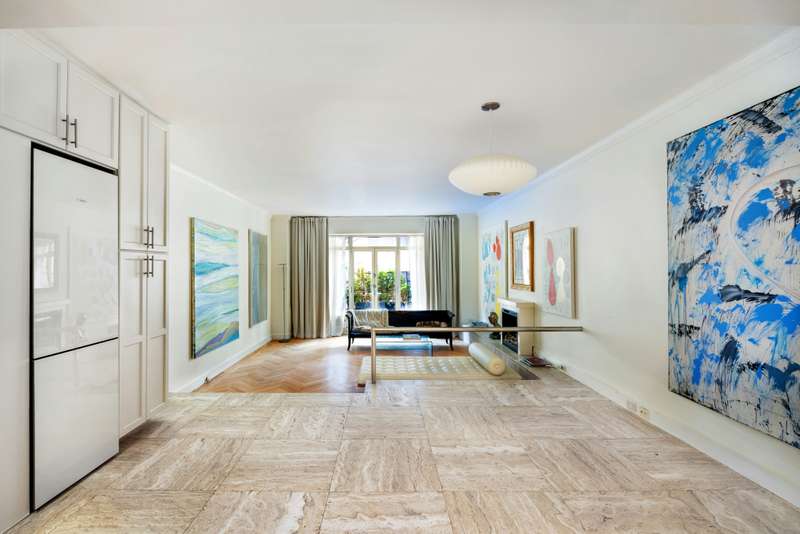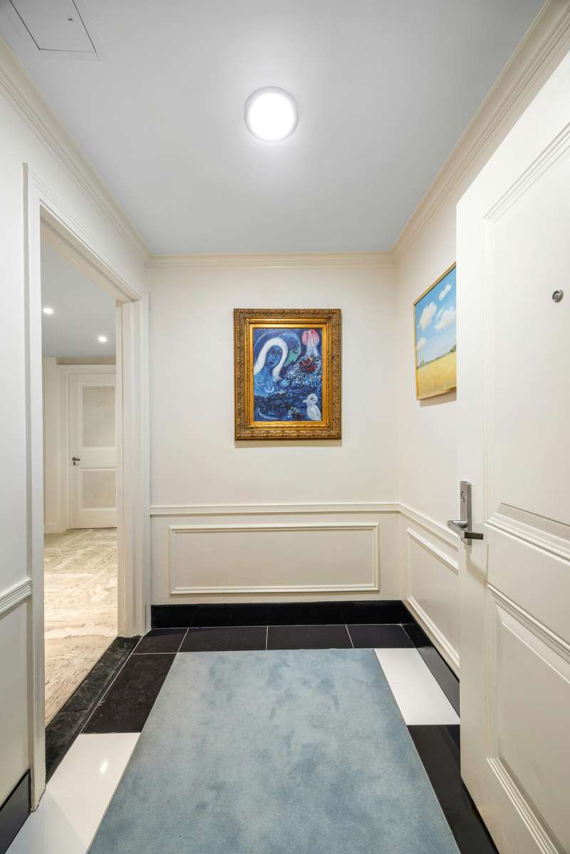 The new kitchen is spectacular ;with custom cabinets, white marble countertops and backsplash and Bosch fridge, ;cooktop and dishwasher. ; The apartment has stunning travertine