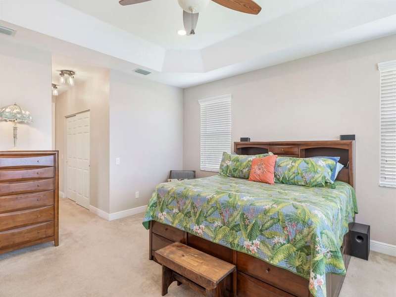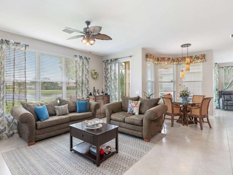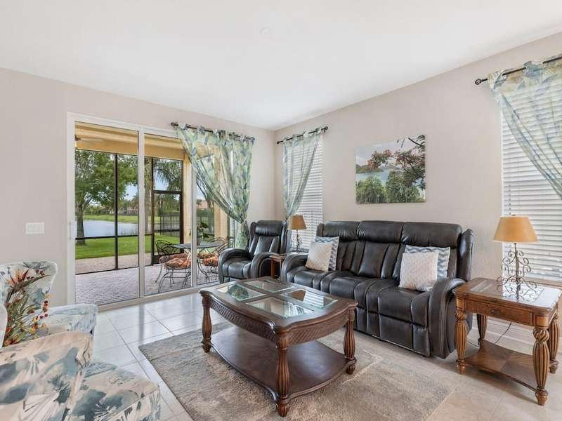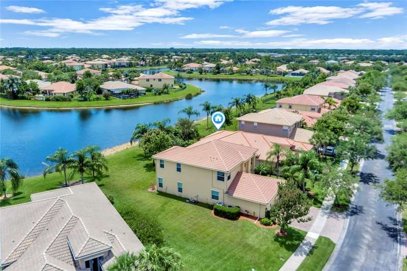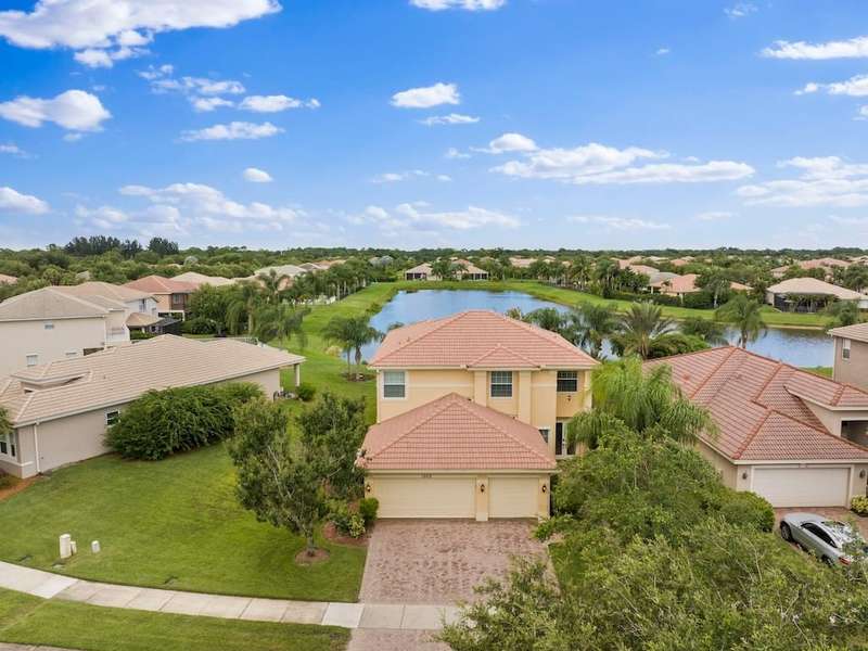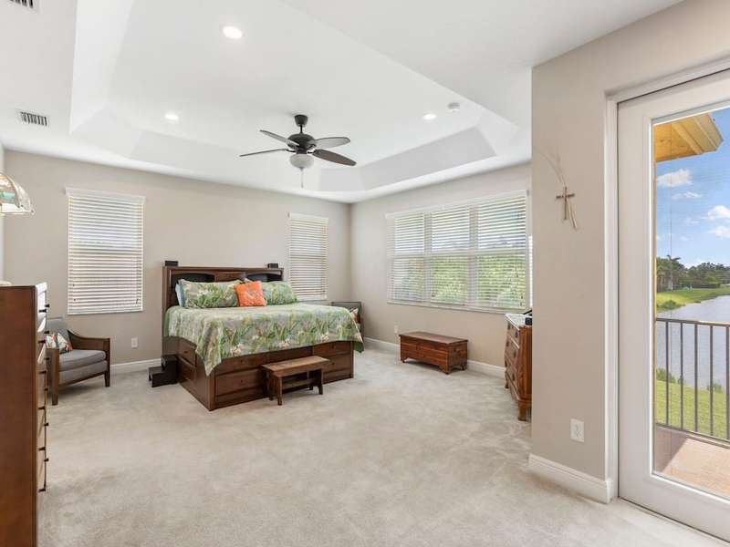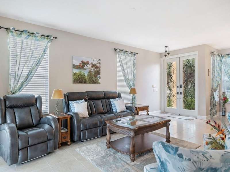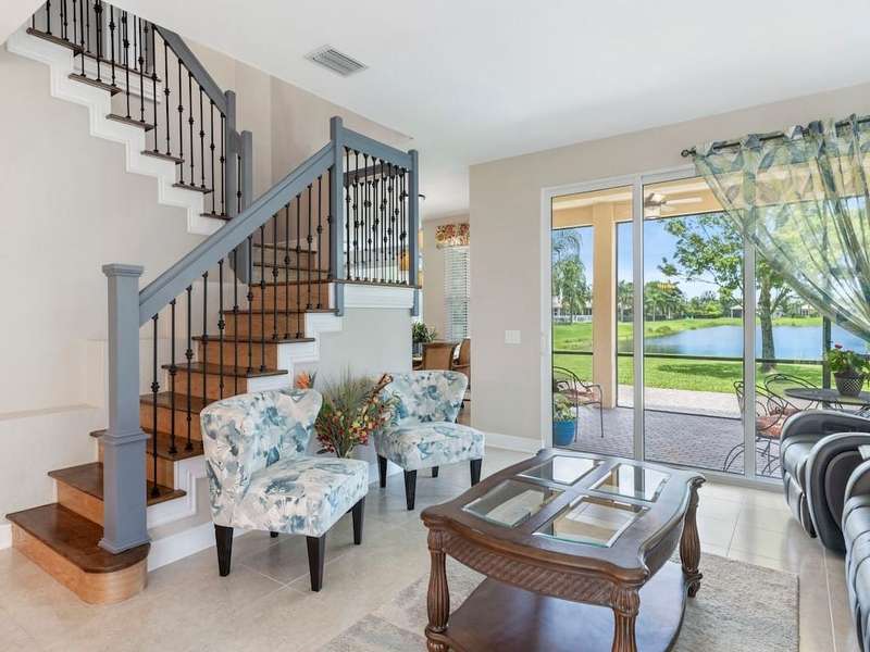 Lakefront, Expansive 5BR 3BA 3CG Home on a large Lot Meticulously Maintained! This home features NEW IMPACT windows and doors with a lifetime warranty, tile and laminate floors, an upgraded staircase and light fixtures, and seamless gutters. The bright kitchen boasts a tile backsplash, white cabinets, and newer appliances. The oversized owners suite includes a sitting area and balcony with serene lake views. Enjoy the extended screened-in porch with long lake views and stunning sunrises! Large yard offers plenty of room for a pool. Low HOA Fee's with Resort-style amenities! Sizeaproxsubj2err