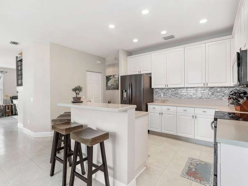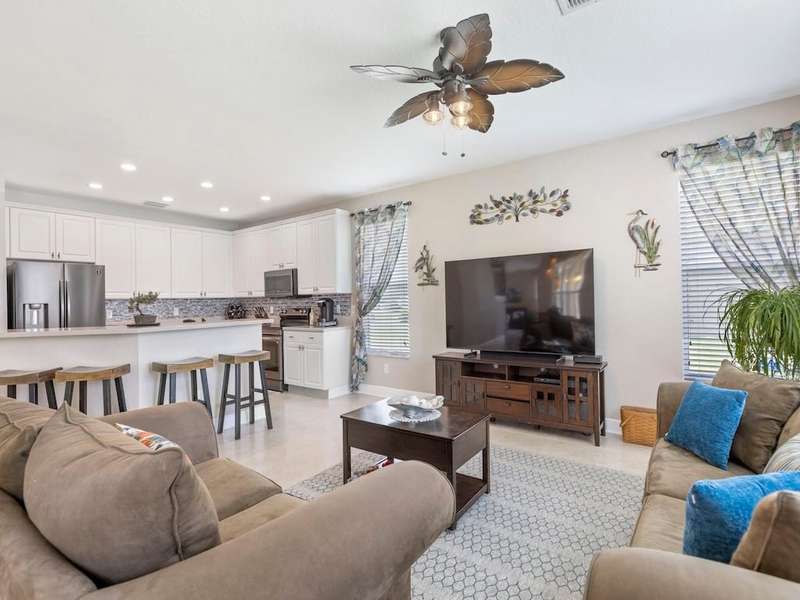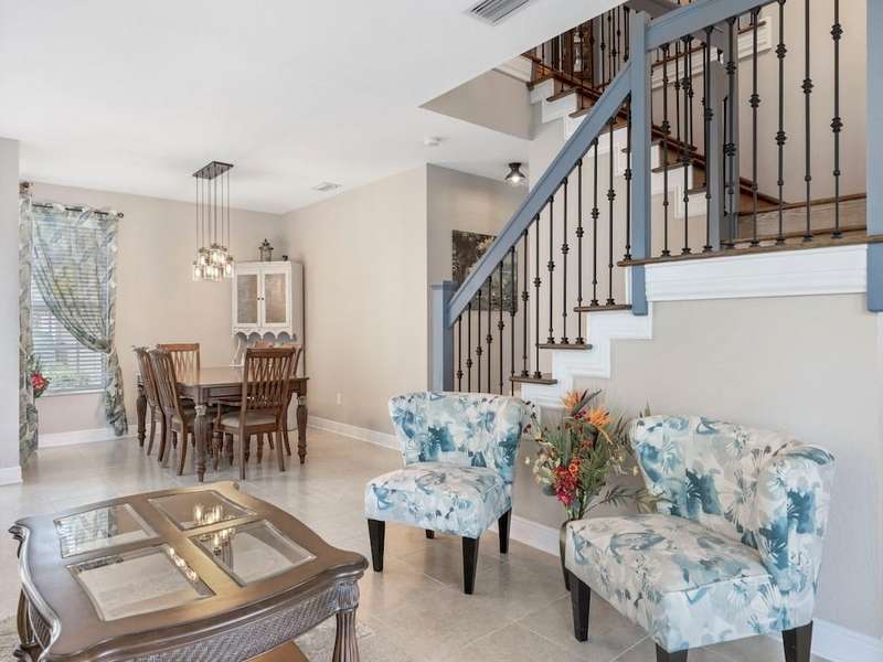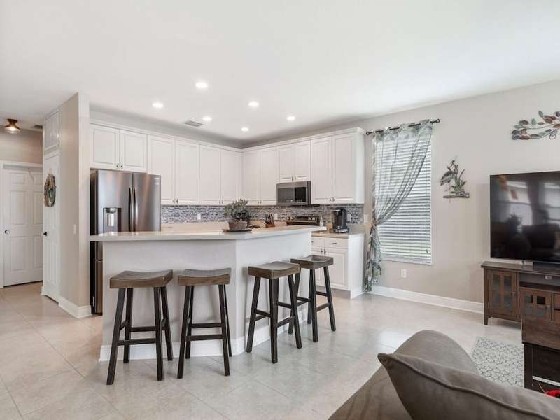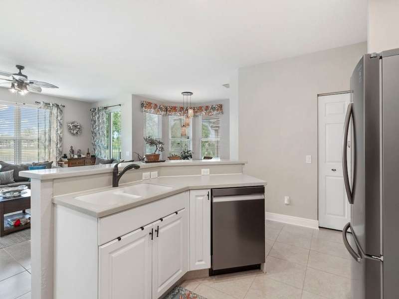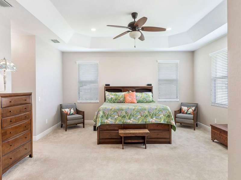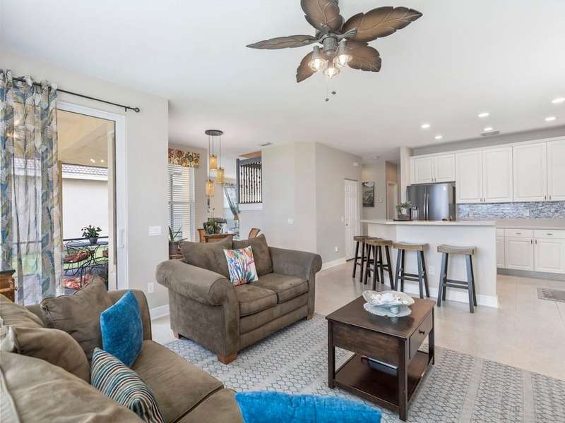 Lakefront, Expansive 5BR 3BA 3CG Home on a large Lot Meticulously Maintained! This home features NEW IMPACT windows and doors with a lifetime warranty, tile and laminate floors, an upgraded staircase and light fixtures, and seamless gutters. The bright kitchen boasts a tile backsplash, white cabinets, and newer appliances. The oversized owners suite includes a sitting area and balcony with serene lake views. Enjoy the extended screened-in porch with long lake views and stunning sunrises! Large yard offers plenty of room for a pool. Low HOA Fee's with Resort-style amenities! Sizeaproxsubj2err