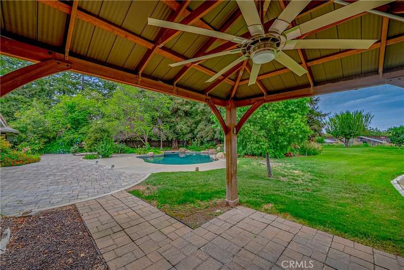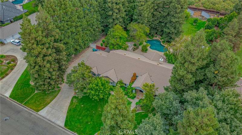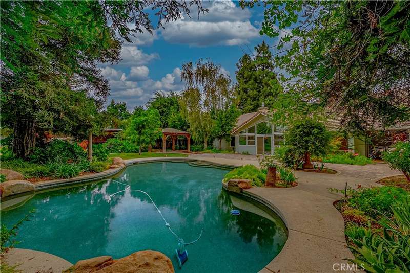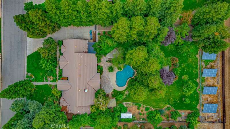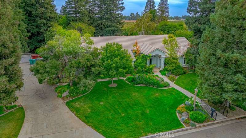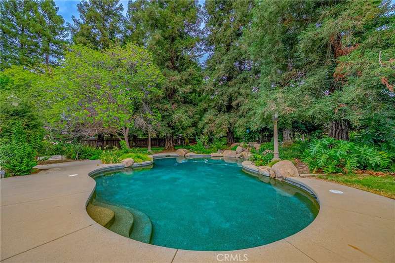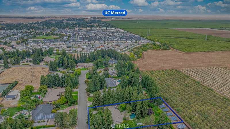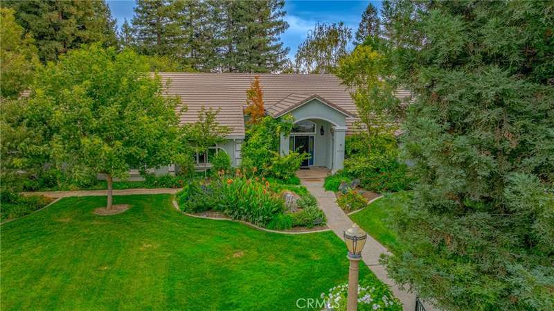 Welcome to your dream home in the highly sought-after Whispering Creek neighborhood of North Merced! This elegant 4-bedroom, 3-bathroom residence offers 3,264 sq ft of luxurious living space on a beautifully landscaped 1-acre lot, combining privacy, comfort, and style in one exceptional package. From the moment you arrive, you'll be captivated by the lush front yard, featuring mature landscaping and towering redwood trees that create a peaceful, secluded atmosphere. Inside, the entryway opens to a spacious family room with cathedral ceilings, a cozy gas fireplace, wet bar, and an open floor plan. The home is ready for your personal touch with concrete floors in various rooms, offering a blank canvas to install the flooring of your choice-whether it's hardwood, luxury vinyl, or custom tile. The gourmet kitchen is a chef's delight, equipped with Thermador double ovens and 5-burner gas cooktop, center island, and a casual eat-in dining area that flows seamlessly into the family room-perfect for entertaining. Retreat to the expansive primary suite, offering enough room for a sitting area, office, or workout space. The en-suite bathroom features double sinks, a vanity area, separate tub and shower, walk-in closet, and private access to the backyard. Additional highlights include: a formal dining room, versatile sun porch, laundry room with sink and ample storage, sparkling in-ground pool, covered patio, gazebo, and storage shed and leased solar paid through September 2034. Enjoy the peace of country-style living just minutes from town, with quick access to shopping, schools, parks, and Campus Parkway. Don't miss this rare opportunity to own a slice of tranquility in one of Merced's most desirable neighborhoods.