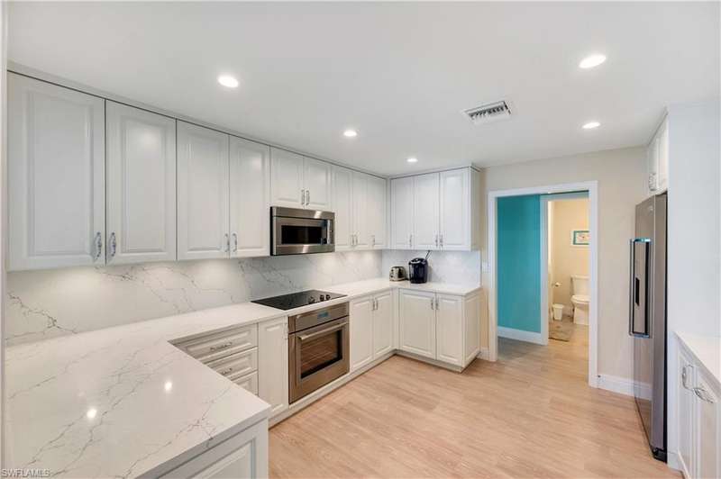 TOES IN THE SAND! A ONE-OF-A-KIND BEACHFRONT CONDO IN THE HIGHLY DESIRABLE COQUINA SANDS NEIGHBORHOOD OF NAPLES FL AT THE SURFSIDE CLUB! Totally remodeled 3 bedroom, 2.5 bath 2nd floor unit with a fully equipped white kitchen with stainless steel appliances, in-residence laundry room with full size washer and dryer, luxury vinyl flooring, built-in cabinetry, large screen TV and a spectacular front porch overlooking the sandy beach and shoreline. Relaxing is easy when you can hear the sounds of the waves hitting the shore! Just steps to the NEWLY remodeled swimming pool and pool patio which is surrounded by a frameless clear fence to view the beach! Sports enthusiasts, beach combers and foodies can t help but fall in love with the carefree lifestyle in this premier location, with fishing, golf, tennis and world- class dining and shopping in downtown Naples off 5th Ave & Third Street nearby. Coming Soon Fall 2025: The Four Seasons experience, with shopping, restaurants and activities for