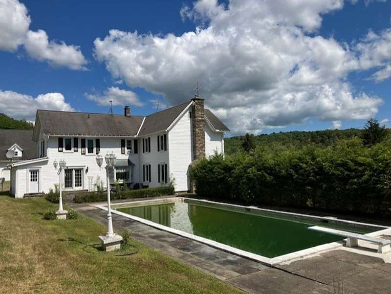 Make your move. We invite you to tour this grand 5 bedroom 3 and a half bath colonial farm house with timeless charm and modern updates on 64 beautiful acres. This property features a 3-car garage, a barn with 5 stalls and a concrete in ground pool with a new system. The pool updates completed by a licensed pool contractor. Upon entry you are greeted with large foyer and living rooms on each side creating a symmetrical and functional layout.? Opportunities for one formal and one casual living space, one with a large fire place. This home has been impeccably updated with modern sensibilities. Large eat in kitchen with coffee bar and French doors that open to slate patio for perfect outdoor living. A convenient first floor laundry and mud room with extensive cabinetry for storage. A private primary suite with bath and large walk in cedar closet. Move right in! If you like what you see, the furnishings are available for purchase. Many updates include new vinyl replacement windows installed throughout the home. Wood floors throughout the home were refinished with stunning patina. Perfect family home, but could accommodate a generous air BnB opportunity or bed & breakfast investment. Property located 35 miles to Binghamton & Vestal for shopping. Easy access to the Binghamton airport. For the outdoor enthusiast hundreds of acres of state forest nearby. Hike the Finger Lakes trail. Take a picnic at nearby Bowman Lake State Park. First class downhill skiing at Greek Peak Resort.