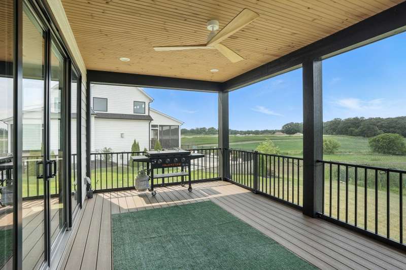 This thoughtfully designed 5-6 bedroom custom home offers privacy, space, and stunning views of the peaceful meadow behind-no rear neighbors. Set on a generous lot, the property includes a 3-car garage with epoxy flooring, zoned heating and cooling, and a screened-in porch off the kitchen to enjoy the scenery. Inside, you'll find a full related living suite with its own kitchenette and a second laundry setup-perfect for extended guests or multigenerational living. The kitchen is both stylish and functional, featuring a huge walk-in pantry and easy access to the screened-in porch for outdoor dining. Upstairs, the main laundry room is conveniently located near the spacious Owner's Suite, creating a private and comfortable retreat. The unfinished walk-out basement offers 9-foot ceilings and a dedicated space ideal for a golf simulator, gym, or future entertaining area-providing endless potential to expand. With quality craftsmanship, a smart layout, and room to grow, this home is a rare find. Schedule your private showing today!