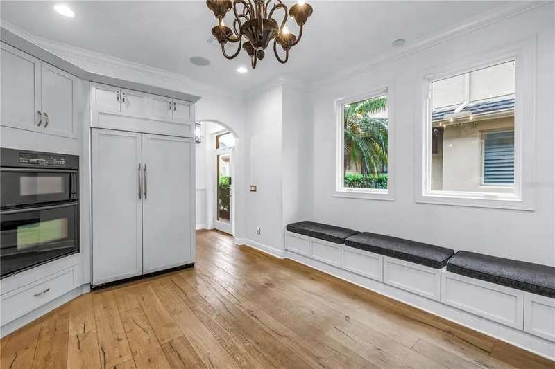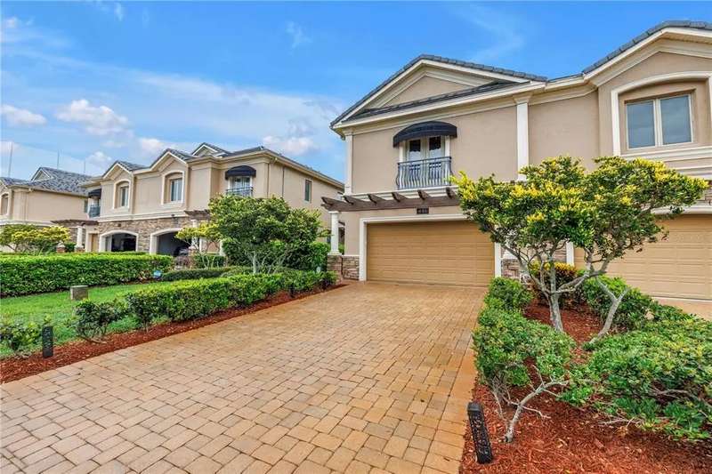 Exceptional Luxury Townhome with Water & Conservation Views – Saxony Place at Carillon is a gated community perfectly located between downtown Tampa and downtown St Pete with two major airports just 15 minutes away! Enjoy the privacy of a end unit townhome with the ease of low maintenance living. This townhome delivers the space of a single family home - formal dining, large kitchen and oversized living space with a wood burning fireplace. The kitchen has a recent renovation, a unique feature for this well built community, that includes solid wood shaker cabinetry, Quartz counters, built-in appliances and a pass-through bar to the living space - ideal for entertaining. Upstairs you will enjoy the privacy of 3 bedroom suites - each room offers en-suite baths and spacious closet storage. The main suite features two walk-in closets, a spa like bathroom with large soaking tub, glass enclosed shower and doubly vanity. A cozy wood burning fireplace sets the mood for a perfect getaway and a bonus sitting room with built-in wet bar complete this retreat. Outdoors, the screen-enclosed lanai overlooks the community water feature and lush conservation area (no rear neighbors!). While the oversized 2-car garage provides exceptional storage. HOA fee $550 covers roof replacement, exterior maintenance, pest control, security guard, grounds maintenance and manager. Luxury finishes, a prime location, and unmatched privacy make this townhome a rare find in Tampa Bay. Exceptionally well built, the home includes double pane, hurricane rated casement style windows and block construction both levels. The community experienced no flooding during the 2024 storm season.
