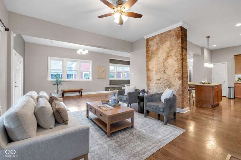 Welcome to 1407 Woodlawn in the center of the lively neighborhood of Fountain Square. This 3 bedroom, 2.5 bath home blends city living with the kind of warmth and space everyone craves. Completely renovated down to the studs in 2016, it was thoughtfully designed to honor the home's character while bringing in all the modern comforts. Step through the front door and you're welcomed by natural light, airy open living spaces, and the charm of exposed brick. The kitchen flows effortlessly into the dining and living areas, creating the perfect setting for family dinners, homework at the table, or weekend brunch with friends. The convenient laundry room features cabinetry for your storage needs, and the upstairs primary suite offers a quiet retreat, complete with ensuite bath and walk in closet. Two additional bedrooms give everyone their own space, and the basement is an excellent flex space and offers ample storage. Step outside, and you'll find your own backyard haven - an oversized block garage with room for cars and projects, a basketball area, space to plant a garden, and a generous yard wrapped in a privacy fence. Best of all, you're just a stroll away from Fountain Square's beloved restaurants, coffee shops, and local spots-close enough to feel part of the action, yet with plenty of room to breathe once you're home. HVAC ('17), Roof ('17), Plumbing & Electrical ('17), Windows ('17). UV filter and whole-home humidifier added to HVAC. Kinetico Water Softener & K5 Reverse Osmosis.