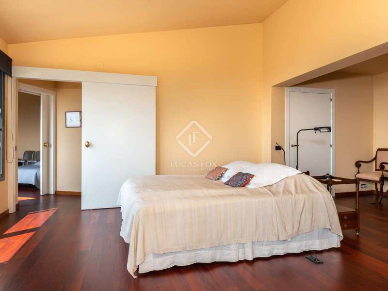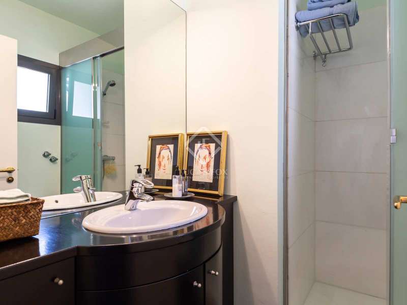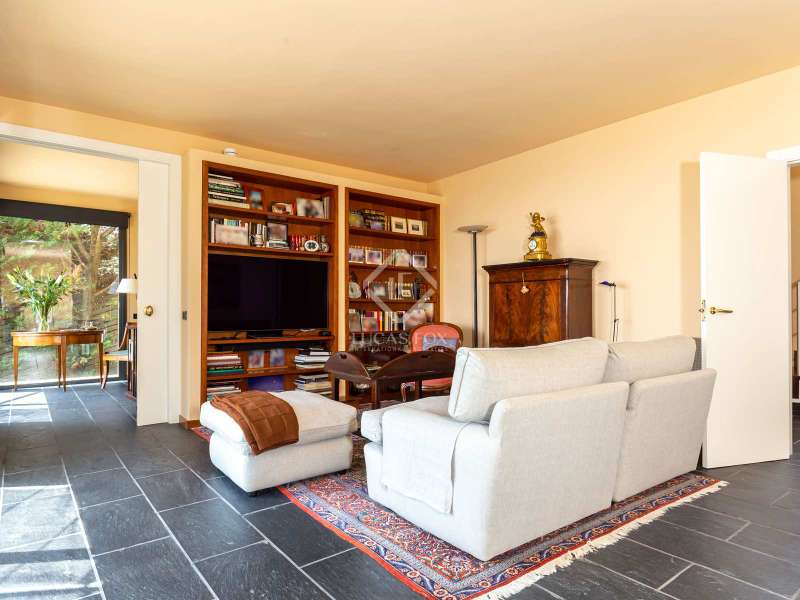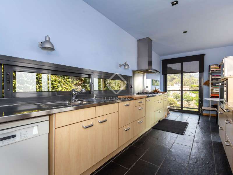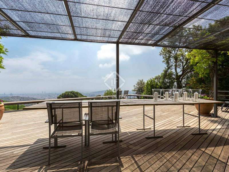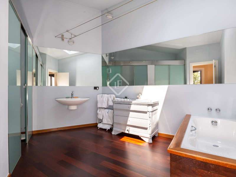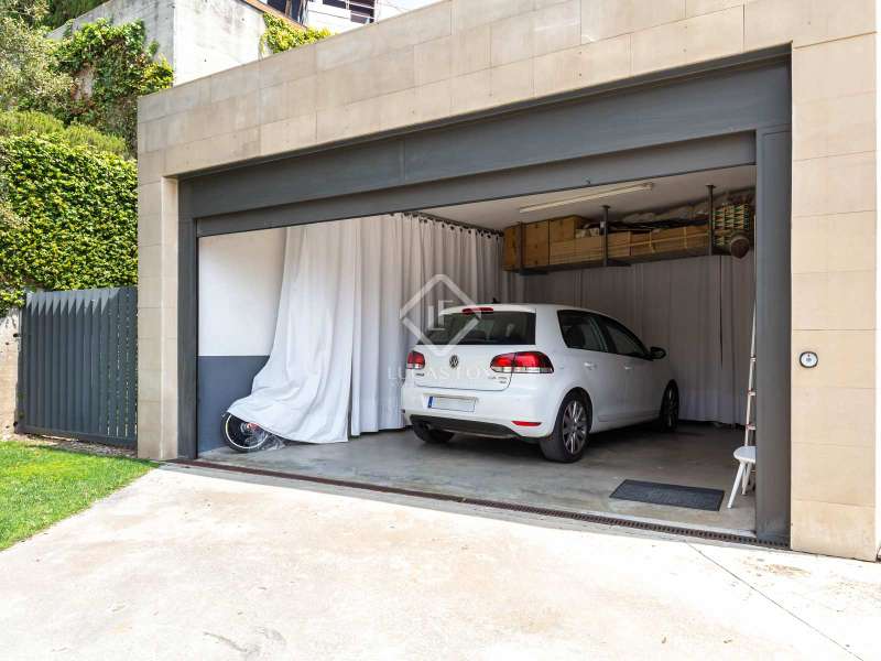Spectacular contemporary design house in Vallvidrera. It has fantastic views of Barcelona and is close to the city centre and Sarriá via the funicular. On the main floor we find a large hall that leads to an impressive dining room living room with access to an impressive 90 m2 terrace with unobstructed views. The kitchen is fully equipped and has a pantry and a utility room area with a separate entrance. Next to the living room, we have a room with a bathroom that is used as a living room, but that can be converted into a room. On the other hand, we can access the garage with capacity for two cars from inside the house. On the upper floor , the night area houses two large bedrooms with a large dressing room and full bathroom , as well as large windows that provide a lot of light and unobstructed views of the city of Barcelona. On the lower floor we find a 115 m 2 summer apartment with a dressing room and a full bathroom , which we access via stairs. Here, we also have direct access to the garden area, pool, machine room and a small storage room. The house is part of a very exclusive community in the area. His work is the product of the architect Norman Cinnamond, who has made a perfect fusion between the rationality of the spaces and the characteristics of his architecture, for which the result has been an exceptional property. In addition, it is ideal for a family that wants to live in an exclusive area well connected to the city.