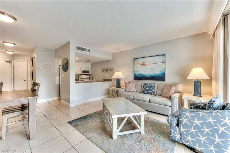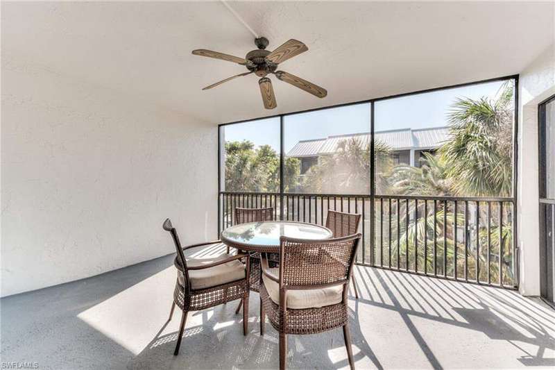 Experience island living in this charming 1-bedroom, 1-bath South Seas Villas condo on Captiva. Located on the second floor and sold fully furnished, it's ready for personal use or rental income. The open layout features coastal-inspired decor, granite countertops, tile flooring, and a comfortable living and dining area that opens to a screened lanai with views of the lush landscaped courtyard-perfect for enjoying the island breeze. The bedroom is a peaceful retreat with soft-toned furnishings, 6-panel interior doors, and much more. This condo is part of an off-site rental program, offering flexible options and solid income potential for investors or seasonal residents. Take a short stroll to Captiva's world-class beach to catch a breathtaking sunset, or start your day under the community pergola with a sunrise painted in blues, oranges, and yellows. Residents enjoy access to a private pool, BBQ area, and more in this welcoming South Seas Villas community.