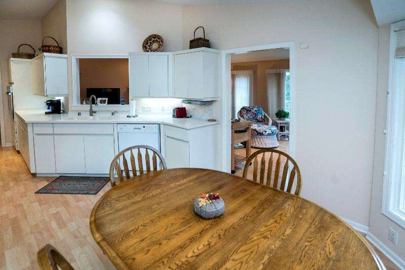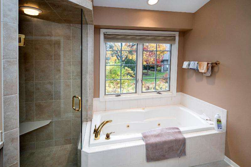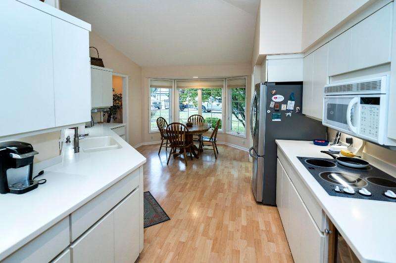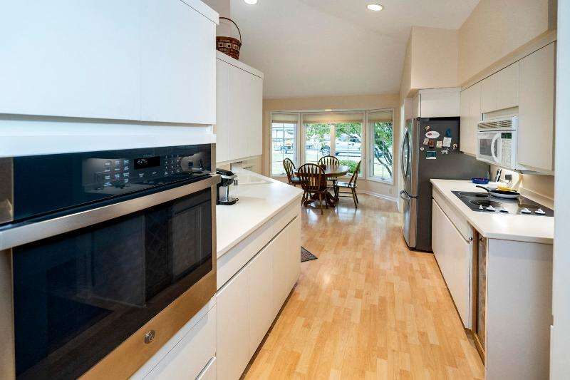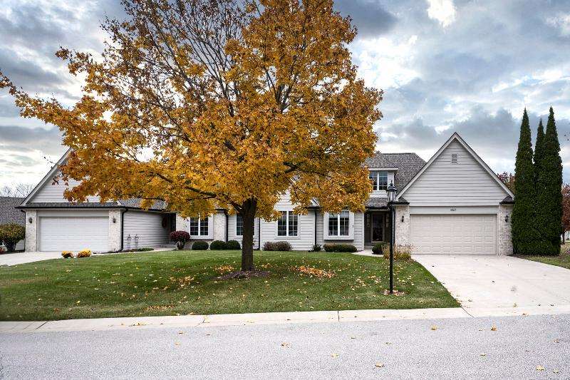 Gorgeous side-by-side condo in Pheasant Run. Bright, sunny with beautiful updates. Corian countertops, wood floor laminates and newer painting throughout. Vaulted ceiling entryway with plenty of light! Dry, unfinished lower level. Quarterly association fees $2,082. Gorgeous master suite with WIC and deluxe bathroom--separate tub and SS. Gas fireplace and stone hearth. Unfinished, dry 8' ceiling basement with backup battery for sump pump. Ceiling fans in master and living room. Fees cover beautiful landscaping, snow removal, water, and sewer. Beautiful complex--close to Brookfield shopping, parks, churches, library.