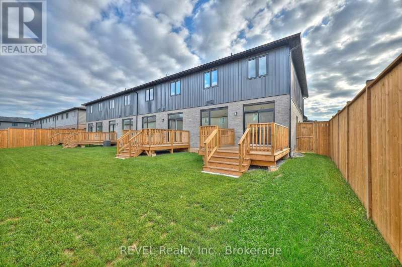 Welcome to Forestview Estates in Niagara Falls! This stunning townhome features 3 spacious bedrooms and 3 bathrooms, showcasing 9 ceilings, wide-plank hardwood floors, and a spacious open-concept main floor with large windows that flood the space with natural light. The modern kitchen boasts quartz countertops, a centre island, and custom cabinetry extended to the ceiling. The kitchen flows seamlessly into the living and dining areas with access to your private fenced yard and deck. Upstairs, enjoy the convenience of second-floor laundry and a bright primary retreat complete with a walk-in closet and ensuite featuring quartz counters and a glass tiled shower. 2 more bedrooms and a 3rd bathroom with double vanity, quartz counter and tub/shower insert complete this second level. The unfinished basement is ready for you to make it your own, offers opportunity or extra living space. Ideally located near schools, parks, shopping, and quick highway access, this home blends modern finishes with functionality in one of Niagara's most desirable communities. (id:7434)