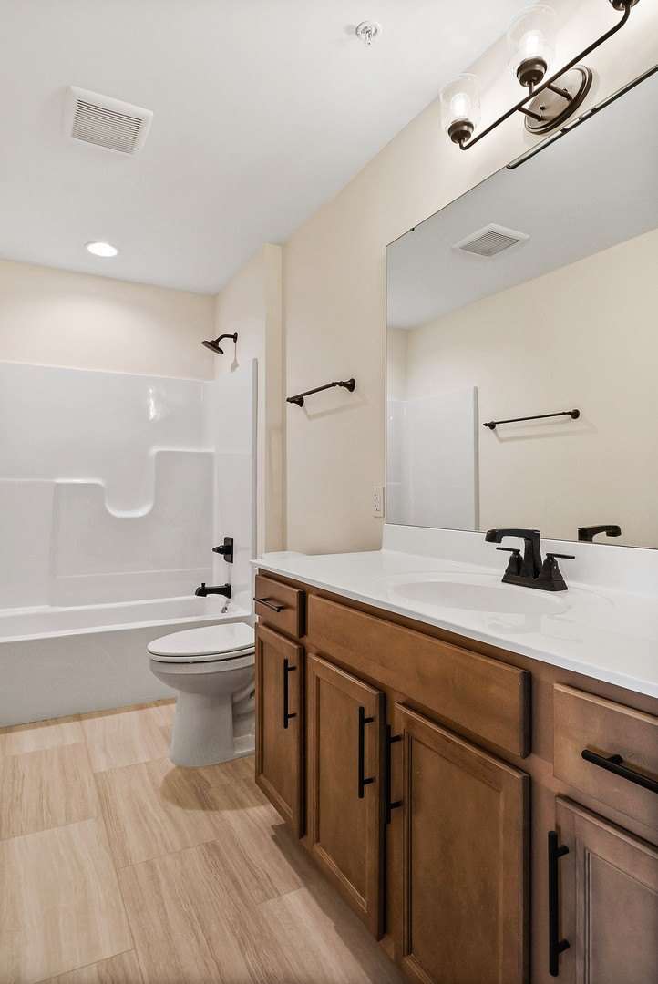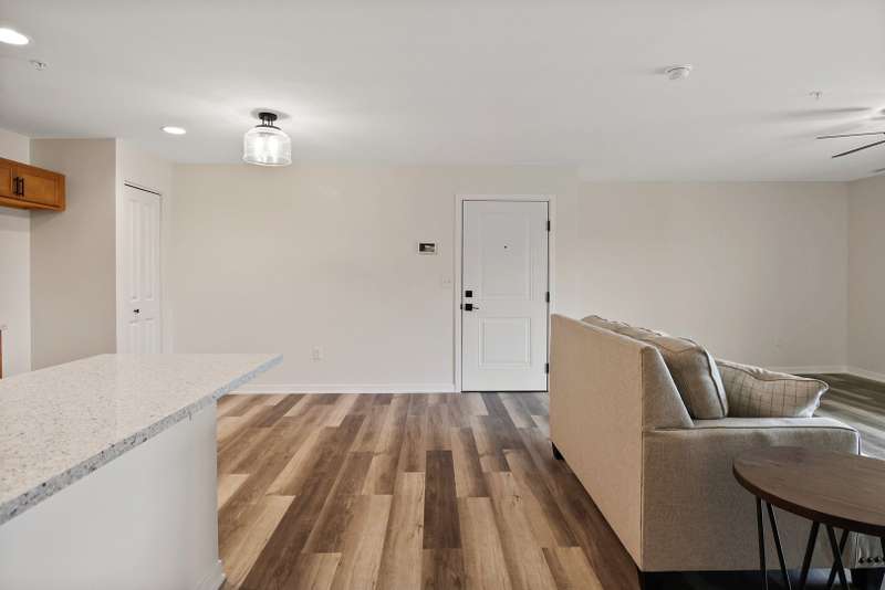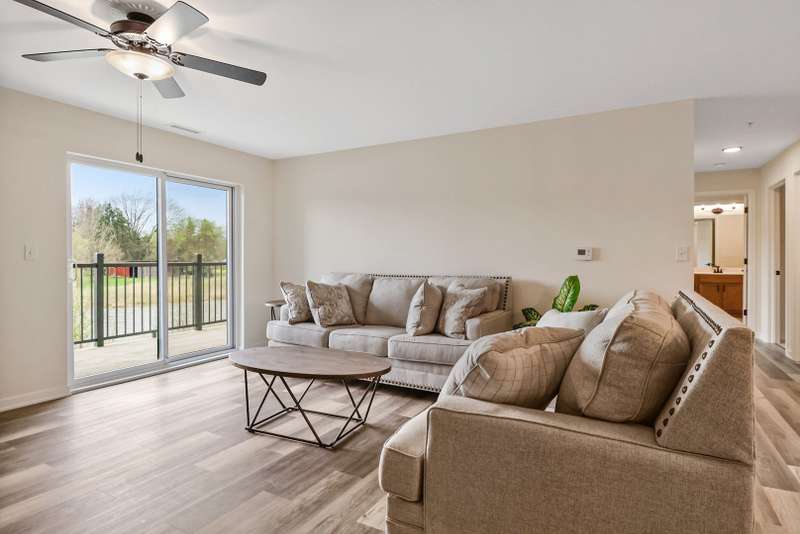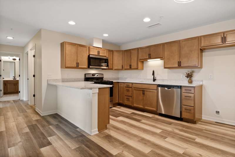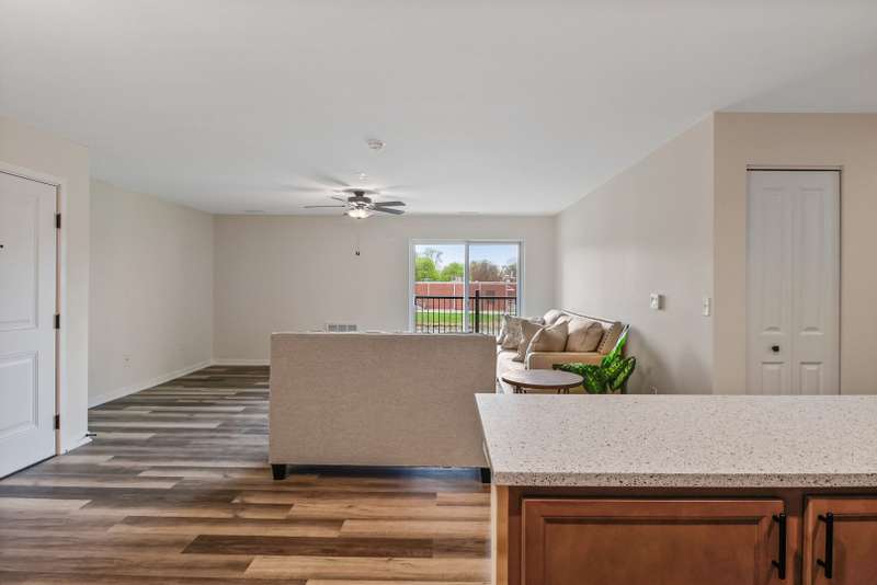 MOVE IN READY - BROOKSTONE NORTH - BURLINGTON MODEL - 1,350 SQ.FT. 2 BED/2 BATH Experience luxury living at its finest in these stunning condominiums conveniently nestled near Rt. 30 and close to I-65, making a commute to IL or MI using I-80/94 a breeze. Boasting an open concept design, these residences are thoughtfully crafted for modern living, where every detail enhances your comfort and convenience. Step into your home through the attached garage, ensuring seamless entry into the elevator accessible building. Inside your condo, discover the epitome of relaxation in your spacious main bedroom, complete with a generously-sized walk-in closet, as well as, an en-suite bathroom boasting beautiful cultured marble vanities. Rest easy knowing that the gypcrete soundproofing ensures tranquility and privacy within your abode. Entertain guests or unwind after a long day on your expansive balcony or prepare meals in style in your sleek kitchen featuring quartz countertops, soft-close cabinets, and stainless steel appliances.Let's not forget the in-unit laundry facilities that will make laundry a much lighter load for you. Outside your doorstep, indulge in a wealth of amenities designed to enhance your lifestyle. Enjoy exclusive access to a clubhouse, perfect for gatherings and socializing. Take a leisurely stroll along the meticulously landscaped walkways. For the nature enthusiast, our catch and release outdoor pond provides a serene escape amidst lush greenery. Plus, with 24-hour live video surveillance in common areas throughout the building and access to the main entrance camera from within your condo, your security and peace of mind are always a top priority. Discover the pinnacle of luxury living in these condominiums, where every feature is tailored to exceed your expectations. Welcome home to a lifestyle of unparalleled comfort, convenience, and sophistication at Brookstone North.