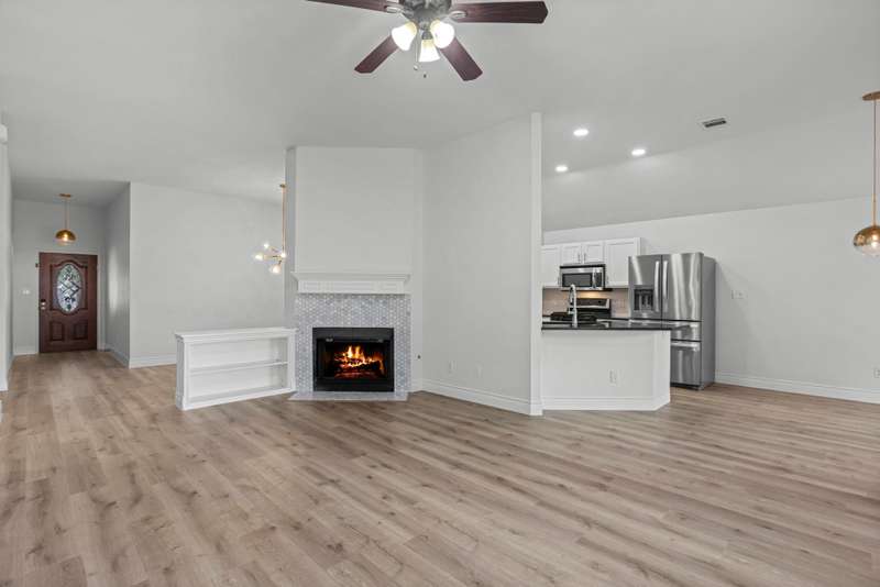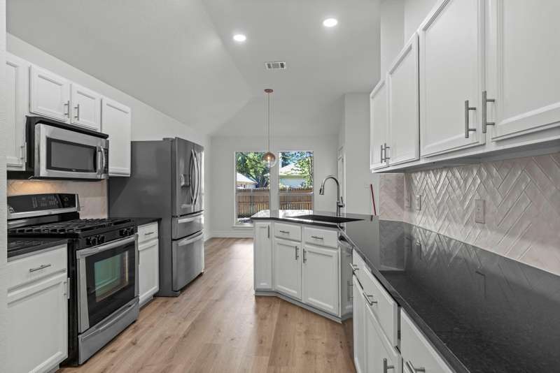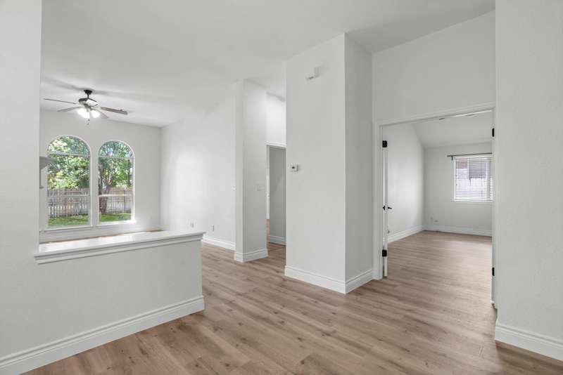 Fantastic opportunity in Vista Oaks, updated from head-to-toe. Easy-flowing four bedroom home with fresh paint, fixtures, no carpet. Updated kitchen AND bathrooms. Fourth bedroom could be study/flex space, TWO dining areas. LARGE laundry room with extra storage. Nice back patio area. Fully fenced back yard. Neighborhood pool and amenity center. Only 2.2 miles to HEB and Walmart Supercenter. Easy access proximity to Ronald Reagan Blvd., 183A, and IH-35. Move right in!