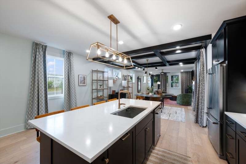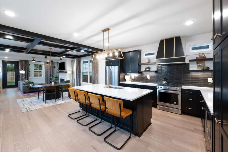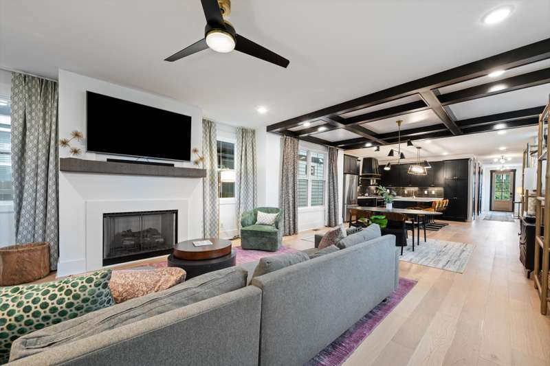 This stunning home in one of West Nashville's most desirable neighborhoods, The Nations, perfectly combines luxury finishes with thoughtful design. From the moment you enter, you'll notice beautiful wood details throughout -- elegant wainscoting, crown molding, and a striking coffered ceiling in the dining area that add warmth and charm to the space. The open-concept living area is bright and inviting, centered around a cozy fireplace perfect for relaxing evenings. The spacious kitchen offers both function and flair, featuring an oversized island with exceptional storage, stylish open wood shelving, and designer finishes. The primary suite impresses with vaulted ceilings, abundant natural light, and an expansive walk-in shower with built in niches. Every closet is thoughtfully designed for maximum organization. Outside, a private fenced backyard creates the perfect setting for gatherings or pets -- all just minutes from The Nations' favorite local spots, including Coco's Italian Market, 51st Deli, M.L. Rose, and Fat Bottom Brewery.