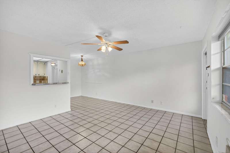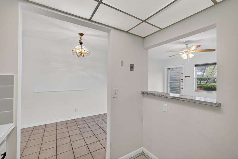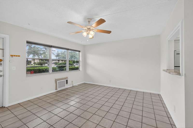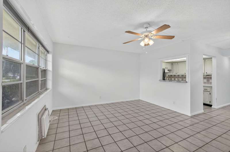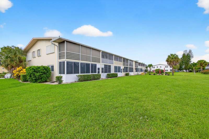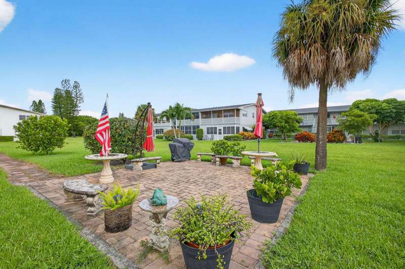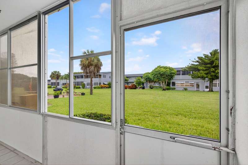 Priced to move, this ground floor 1/1 at Century Village also offers consistent flooring & an assigned parking spot directly in front of the entrance. The kitchen features a peek-through to the living room, unifying the floor plan & opening it up. The screened patio offers a garden view with a well-manicured lawn & plant life. The building has an outdoor common area with a grill, table & chairs on the expansive lawn. The monthly fee is competitive, compared to similar floor plans in the community ($299.94 HOA + $157.82 MA = $457.76). At closing, the special assessment for the roof will be paid off by seller.Century Village has a wealth of amenities, highlighted by: a 92,000 sq ft clubhouse with a party room, theater hosting live entertainment & film screenings, library & billiards.