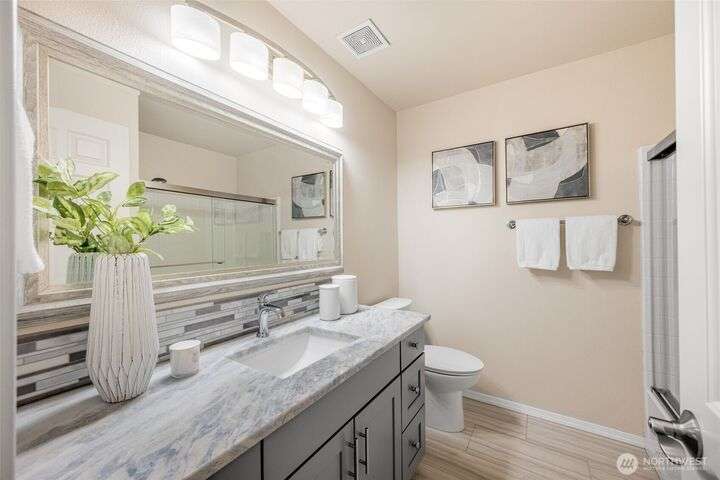 Unbeatable convenience meets modern style in this recently remodeled townhome, w/ easy access to everything you're looking for. Minutes from 405, 522, the Woodinville wine district, & top shopping & dining at Totem Lake, this townhome offers a blend of comfort & connectivity. Open-concept layout flows into a gorgeous new kitchen w/ quartz counters, custom cabinetry, & stainless steel appliances. Upstairs, find a spacious primary suite, w/ remodeled bath & plenty of storage. The second bedroom features territorial views & offers its own private bathroom. Tucked at the end of a quiet lane, you’ll enjoy a quiet retreat w/ all the perks of a strong, well-managed HOA! Community center features EV charging, workout room, sauna, & play area.