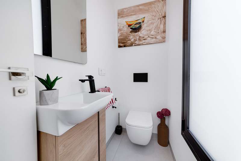 These villas for sale in Pilar de la Horadada come on sizable plots that measure between 329 – 421 m² and come with private swimming pools, gated off-street parking, and a large sun terrace.
