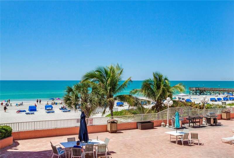ALL SHOWINGS TO TAKE PLACE PRIOR TO NOVEMBER 12TH NEW RENTERS CHECK IN ON THE 13TH!! INCOME PRODUCING FURNISHED LUXURY BEACHFRONT CONDO NEWLY UPDATED 2 BEDROOM 2 BATHROOM IN INDIAN SHORES MILESTONE COMPLETE Welcome to your own slice of paradise! This immaculately renovated beachfront condo offers the perfect blend of luxury, comfort, and breathtaking views. Situated on the pristine shores of the Gulf of Mexico, this two-bedroom, two-bathroom retreat is ideal for both private getaways and lucrative vacation rentals. Step onto the spacious patio and be greeted by the sight of endless white sands and the azure waters of the Gulf. Every inch of this coastal haven has been meticulously updated, from the wood-like ceramic tile flooring to the ceilings, ensuring a fresh and modern ambiance throughout. Inside, the open kitchen boasts new appliances, soft-close cabinets, and stunning quartz countertops accented by sleek, contemporary coastal fixtures. The kitchen has amazing views and is open to dining and living space great for entertaining! A full-size washer and dryer add convenience to your stay, allowing you to pack light and make the most of your time in paradise. Primary Suite is situated with beachfront views with sliders to the balcony. Includes large walk in closet and ensuite bathroom with double sinks and granite countertops. The guest room and bathroom are also large in size. This unit has ample storage. Experience true relaxation on the extended pool deck, complete with ample seating, a large heated pool, and a rejuvenating spa. For outdoor dining enthusiasts, a gas grilling area awaits, perfect for savoring delicious meals al fresco. With secure entry to the building and reserved parking, peace of mind and convenience are guaranteed throughout your stay. Easy access to nearby restaurants, vibrant nightlife, and exciting recreational activities. Whether you're seeking a tranquil retreat or an investment opportunity, this beach condo offers the ultimate escape. Don't miss your chance to own a piece of paradise—schedule your viewing today