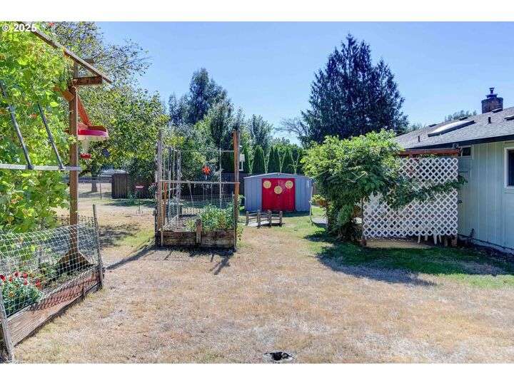 Charming ranch home on large lot in nice neighborhood. The floor plan offers 2 bedrooms, 1 bath and small laundry room off the kitchen. It has vinyl windows, newer hot water heater and a 2 year old Pellet Stove. One car garage with a storage/shop area in the back. Nice yard with fruit trees, garden areas and a storage shed. While it needs some cosmetic updating, the home has good bones and is ready for someone to call home.
