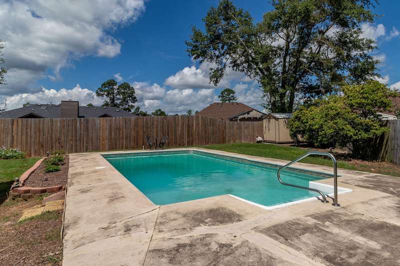 Welcome to this lovingly maintained 3-bedroom, 2-bathroom home with a pool! Nestled in a well-established neighborhood, this property has been well cared for and is ready for new owners. Step inside to find a spacious formal living room and dining room, perfect for gatherings or quiet evenings in. The heart of the home is the generous kitchen, featuring ample cabinetry and counter space, seamlessly flowing into the cozy den, offering the perfect space for casual entertaining or everyday living. Skylights provide plenty of natural light throughout. The owner's suite offers a peaceful retreat, complete with a large en-suite bath featuring a tiled walk-in shower. Two additional bedrooms and a second full bath provide flexibility for family, guests, or a home office. If you're looking for the perfect outdoor space, look no further! The screened-in porch is the perfect place to unwind at the end of the day or enjoy your morning coffee and overlooks the swimming pool. The recently replaced roof and skylights offer peace of mind. This well-cared-for home offers the perfect canvas for its new owners!
