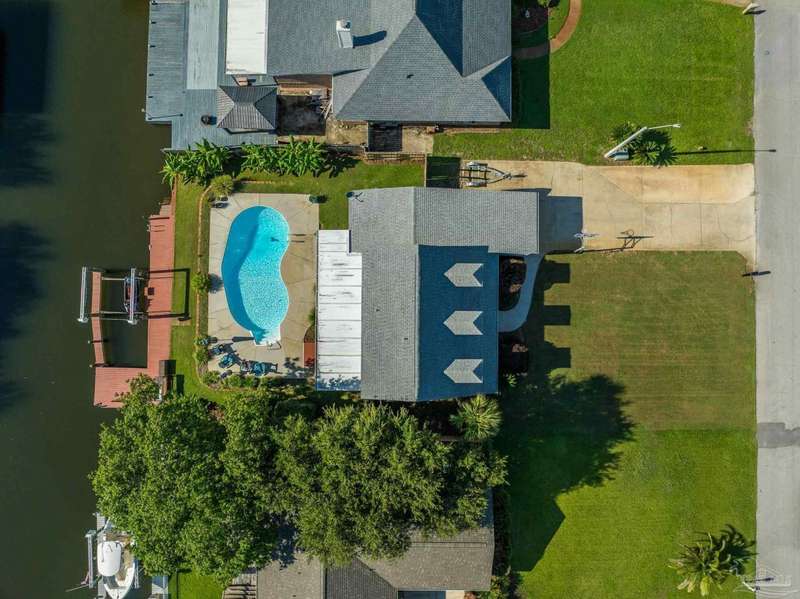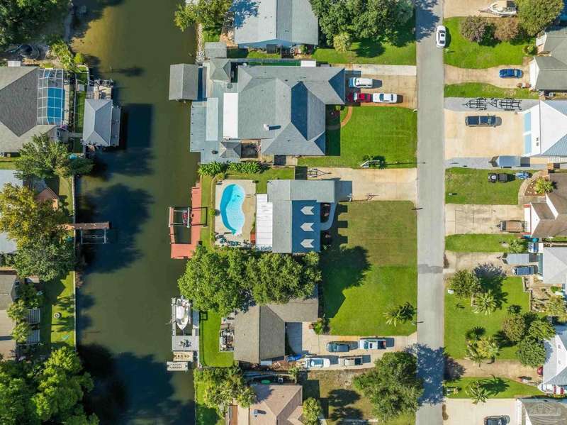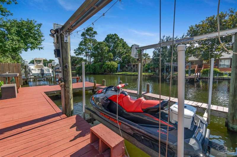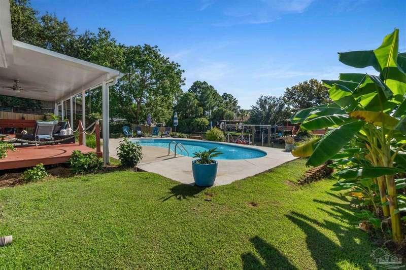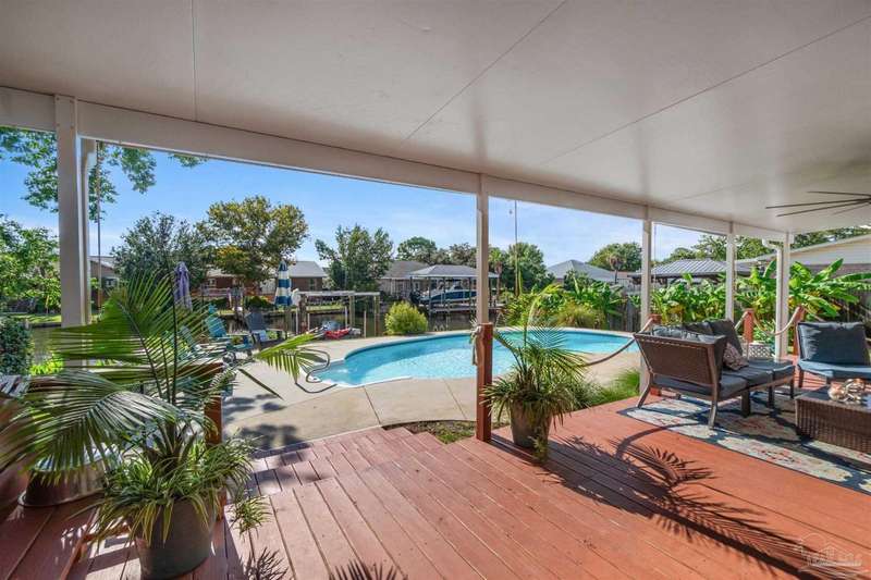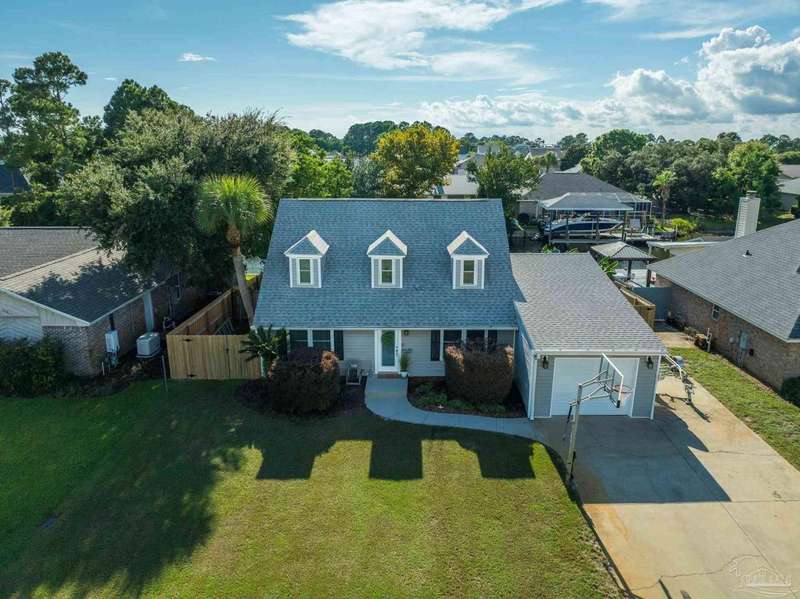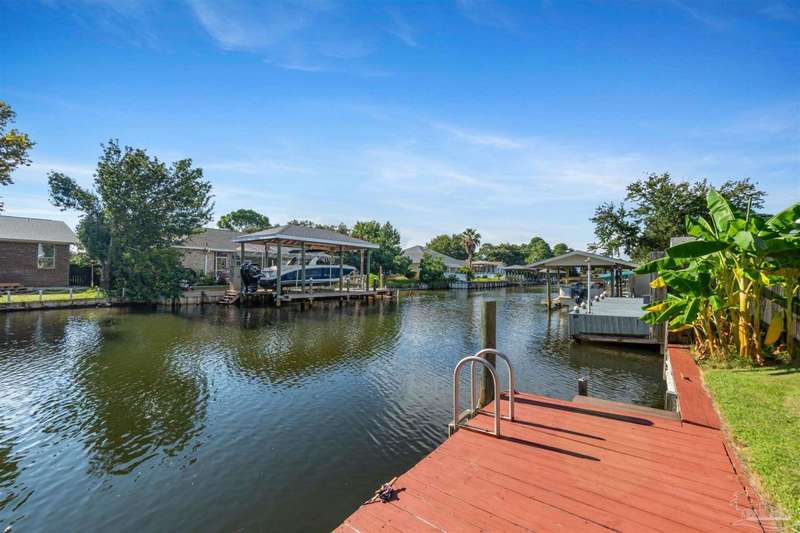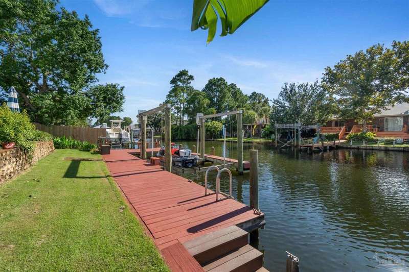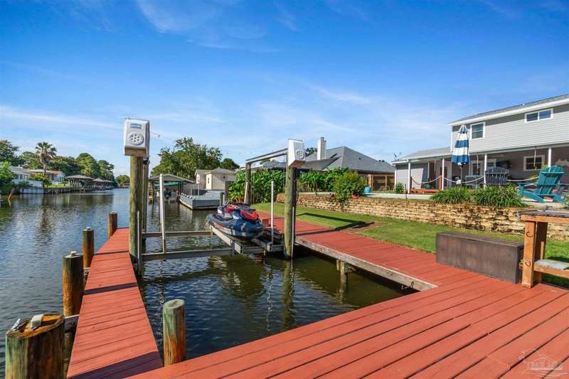 This stunning canal-front home in Gulf Breeze offers the perfect blend of style, charm, comfort, and true waterfront living. The master suite is conveniently located on the main level, providing privacy and ease of access. Tall ceilings create a bright, open feel. A versatile bonus room is ideal for a home office, gym, game room, or additional bedroom. The kitchen features rich granite countertops, stainless steel appliances, an eat-at bar, and ample cabinetry for storage. It flows seamlessly into the living and dining areas, making it perfect for entertaining family and friends. Step outside to your own private backyard oasis. The saltwater, in-ground pool with a Polaris system invites you to relax and cool off on warm Florida days, while the covered patio with pull-down shades provides the perfect spot to unwind in the afternoon. For the boating enthusiast, a private boat slip accommodates up to an 8,000-pound boat or personal watercraft, complete with a convenient bait station. From your dock, you're just a quick trip to the bay-ideal for fishing, cruising, or a day on the water. This home has been thoughtfully updated and maintained, featuring hurricane impact windows, a newer roof, brand new water heater, extra driveway space for a boat trailer, and a sprinkler system on a private well. Every detail has been designed with both comfort and durability in mind, making this home not only beautiful but also highly functional. It's time to make this amazing house your new home!