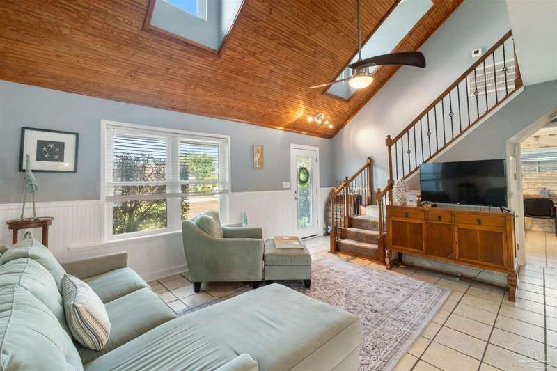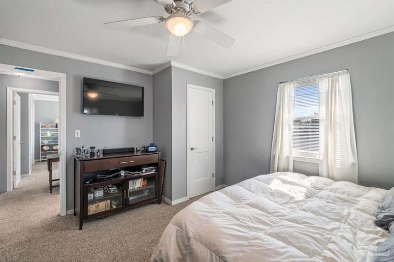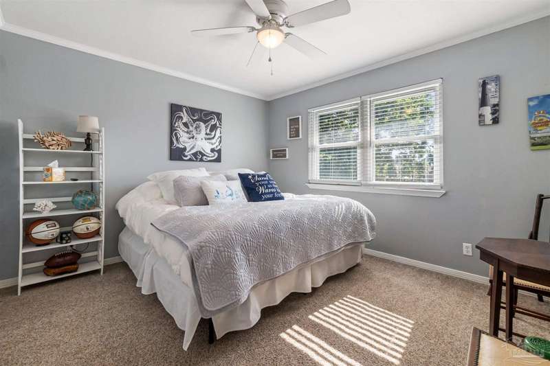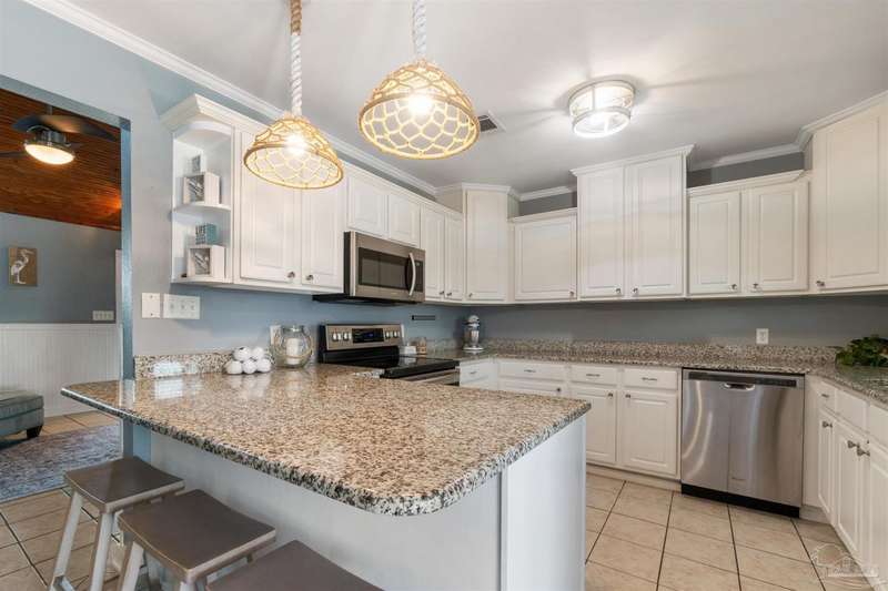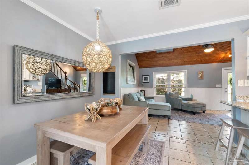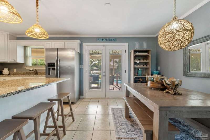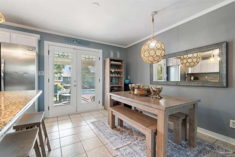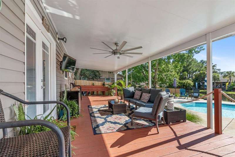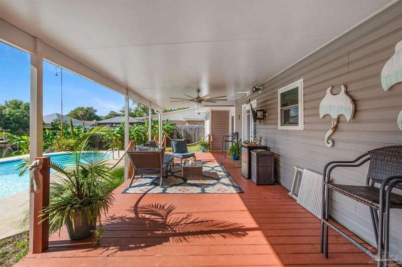 This stunning canal-front home in Gulf Breeze offers the perfect blend of style, charm, comfort, and true waterfront living. The master suite is conveniently located on the main level, providing privacy and ease of access. Tall ceilings create a bright, open feel. A versatile bonus room is ideal for a home office, gym, game room, or additional bedroom. The kitchen features rich granite countertops, stainless steel appliances, an eat-at bar, and ample cabinetry for storage. It flows seamlessly into the living and dining areas, making it perfect for entertaining family and friends. Step outside to your own private backyard oasis. The saltwater, in-ground pool with a Polaris system invites you to relax and cool off on warm Florida days, while the covered patio with pull-down shades provides the perfect spot to unwind in the afternoon. For the boating enthusiast, a private boat slip accommodates up to an 8,000-pound boat or personal watercraft, complete with a convenient bait station. From your dock, you're just a quick trip to the bay-ideal for fishing, cruising, or a day on the water. This home has been thoughtfully updated and maintained, featuring hurricane impact windows, a newer roof, brand new water heater, extra driveway space for a boat trailer, and a sprinkler system on a private well. Every detail has been designed with both comfort and durability in mind, making this home not only beautiful but also highly functional. It's time to make this amazing house your new home!