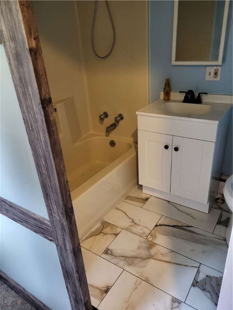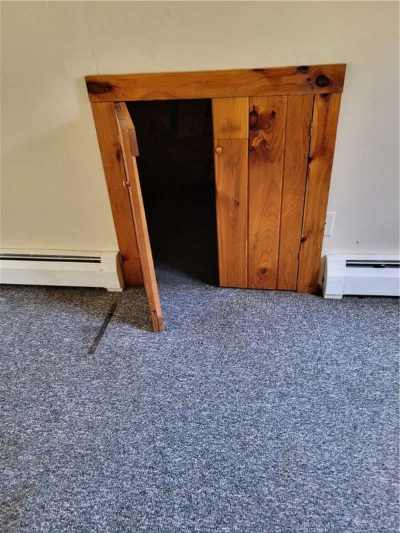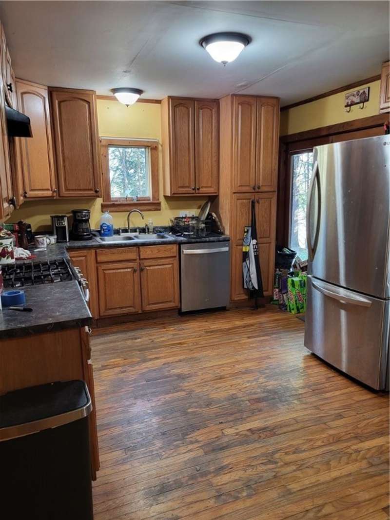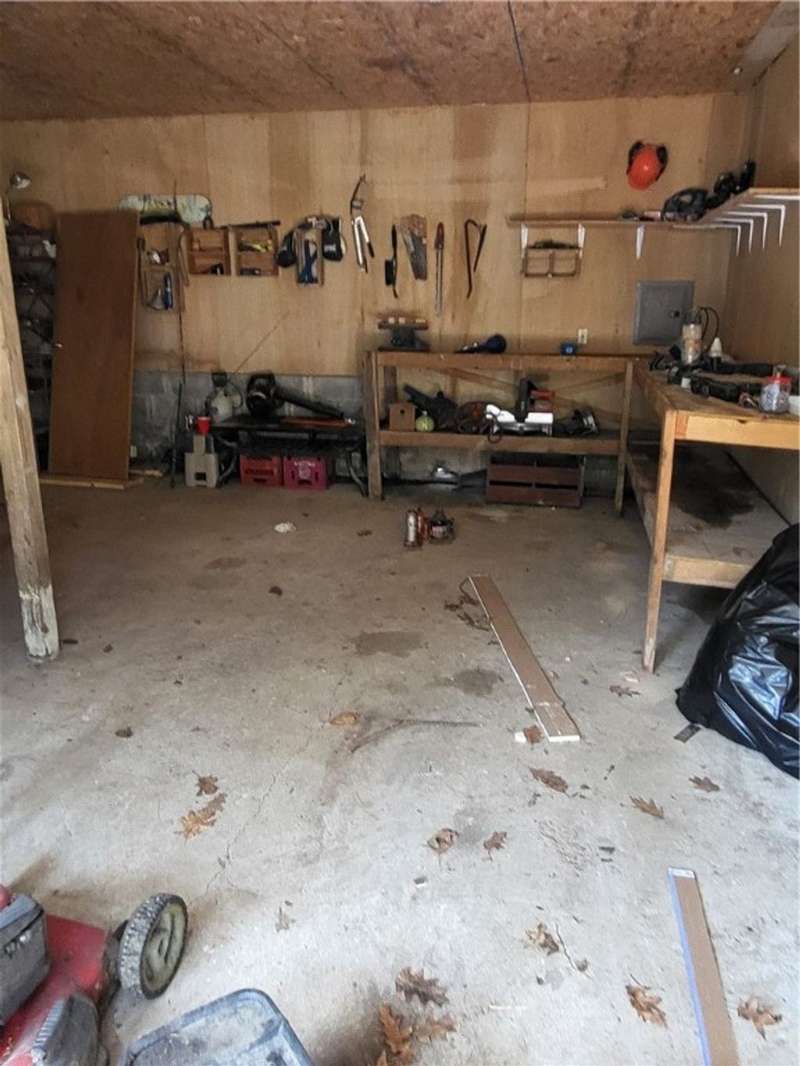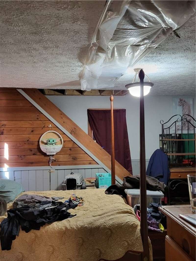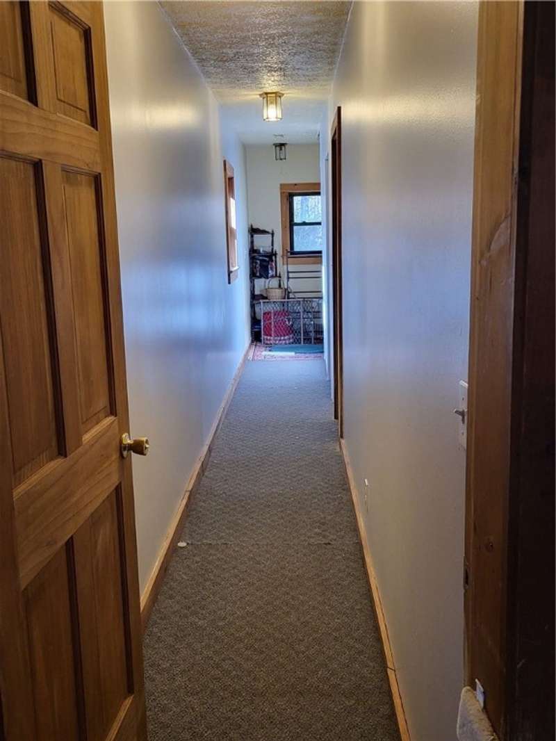 This 3 BR, 2 bath Contemporary is located in a quiet private setting with a small babbling brook running in front of home. The lot is mainly wooded with a nice open back and side yards. As you enter this home you go into a large living room with a stone wall, fireplace with wood burning insert, beamed cathedral ceiling. Overlooking this area is a loft area and on the main level is the kitchen and dining area. The main bath also contains the laundry hook-ups and a walk-in shower. The main floor bedroom is behind the dining area. Stairs to the upper level are in the living room and take you up to the loft. On the left is a doorway to a sitting room with a outdoor balcony (incomplete) and bedroom with sloped ceiling and French doors to a deck (that needs to be built). Straight ahead from the loft is a hallway that leads to the other bedroom, bath with tub, and storage room. There is closed-in storage in most of the walls where sloped ceilings exist.