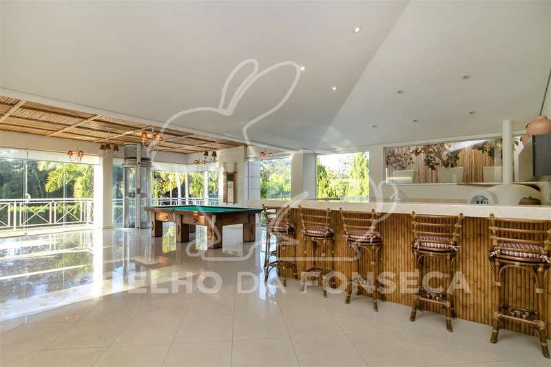 São 8 suítes no total, sendo 5 no piso superior e mais 3 no nível térreo, sendo uma delas master com closet sr. e sra.